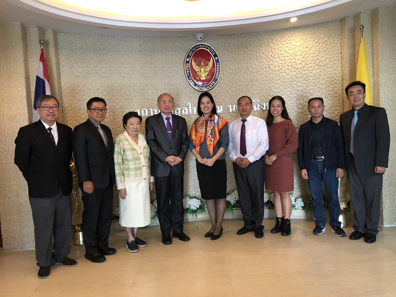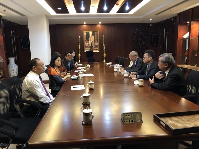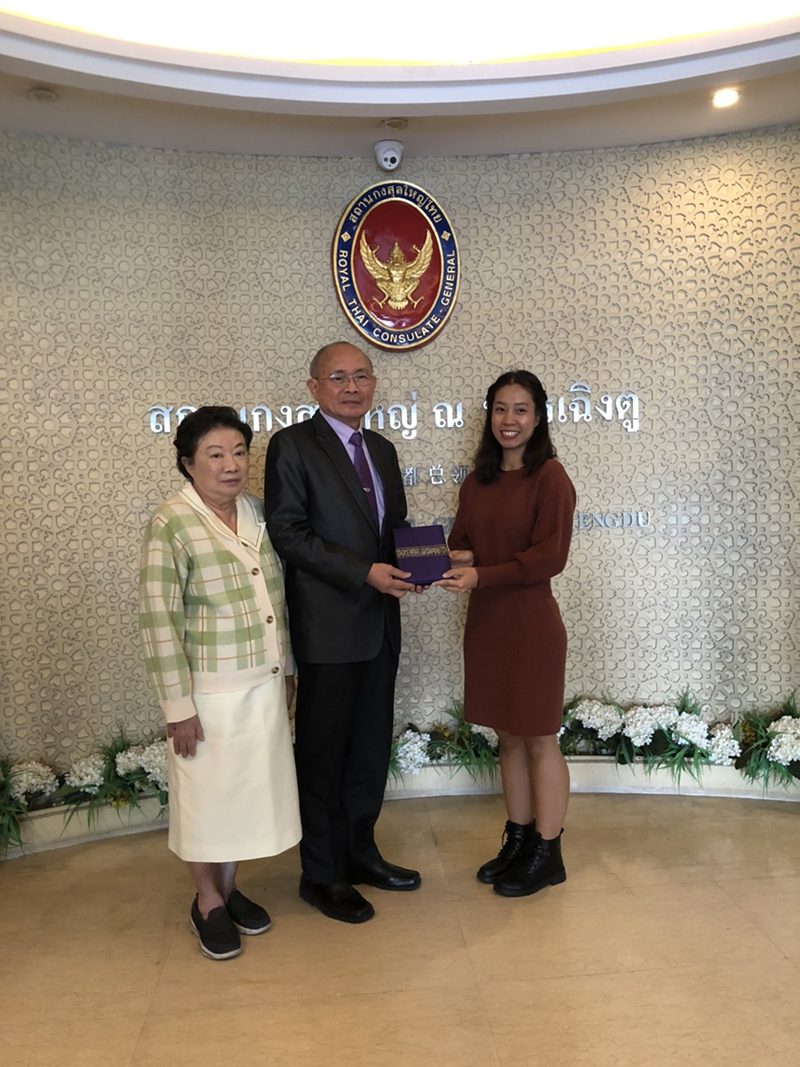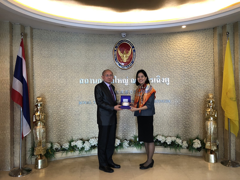 2019年10月16日,校长尼维•南塔齐一行与泰王国驻成都总领事馆副总领事万梦兰女士及绵阳市先锋路诗琳通公主小学校长会议讨论关于清迈大学支持该校泰语教学学科建设相关事宜。绵阳市先锋路诗琳通公主小学是诗琳通公主殿下大力支持建设的学校,清迈大学于今年派出了一位教育学院泰语老师前往该校任教,针对该校小学四、五年级学生及其他对泰语感兴趣的师生开设泰语课。