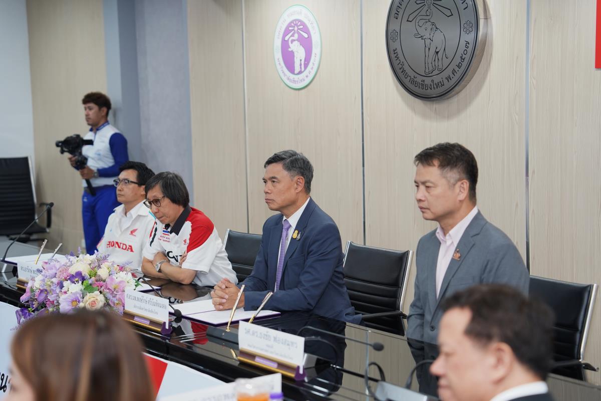 清迈大学校长Pongruk Sribanditmongkol(教授、博士)和泰国本田汽车有限公司董事长Alaksh Phornprapha博士以及清迈大学工程学院院长Thongchai Fongsamootr(副教授、博士)、安全驾驶促进小组主任Somkiat Hongthesakorn先生,于2024年3月14日在清迈大学大学办公室Phraya Srivisanvacha会议室,共同签署了关于“清迈大学生安全驾驶项目”谅解备忘录。旨在开发教学课程方面建立合作,向学生传播知识和安全驾驶技能,促进道路安全科研开发,推进科技与学术知识交流从而预防和减少道路交通事故,为学生树立安全意识和交通纪律,双方合作开发培训课程,并以泰国本田有限公司作为驾驶培训中心,为清迈大学学生考取驾驶执照。