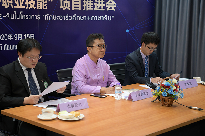 9月15日,中泰合作“中文+职业技能”项目推进会以线上会议的形式召开,副校长龙姆•吉拉努功出席了会议并发言。龙姆副校长表示,将一如既往地支持“中文+职业技能+等级证书”项目的合作发展。出席此次会议的还有泰国教育部职业教育委员会职业教育国际战略与关系处处长朗山•提蒙特理、中国全国电子商务职业教育教学指导委员会副主任陆春阳、北京博导前程信息技术股份有限公司董事长段建和清迈大学孔子学院中方院长沈毅。