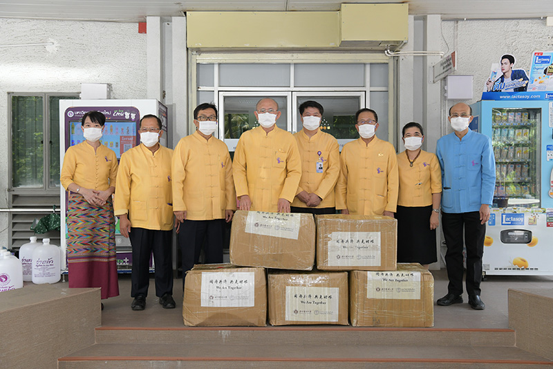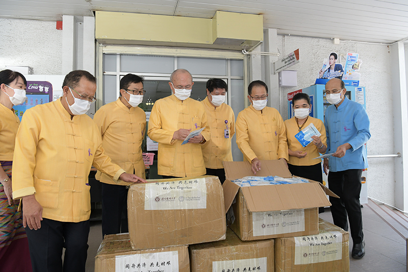 为助力我校抗击新冠肺炎疫情,温州医科大学筹集了15,000个口罩并于日前将口罩送抵清迈。 7月3日上午,口罩捐赠仪式在我校举行,校长尼维•南塔齐代表学校接收。7月正是我校的开学季,这批口罩将发放给全校师生,助力老师同学们在新学期开学期间的防疫抗疫。温州医科大学与我校的友好合作由来已久,特别是师生交流方面,温州医科大学派遣了中医专家教师到我校医学院传统泰医及补充医学中心为广大民众提供号脉、针灸诊疗服务。