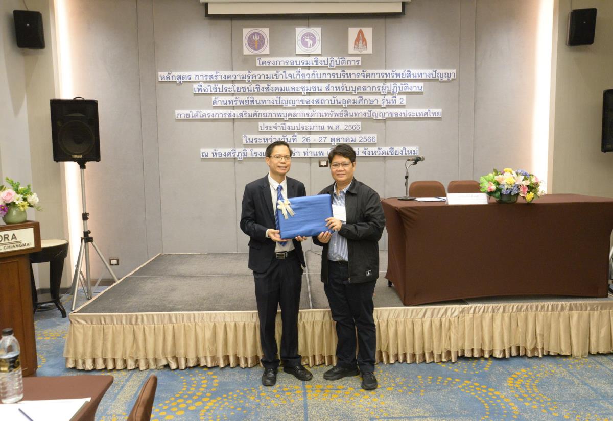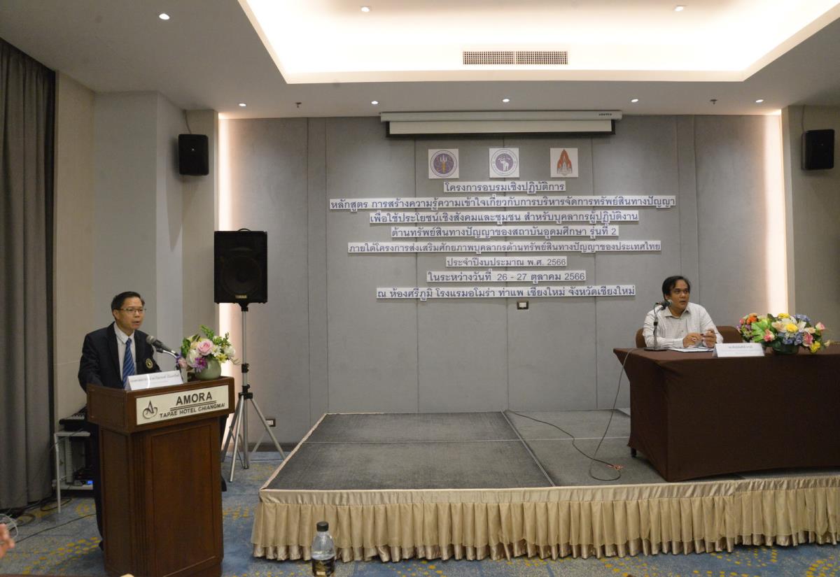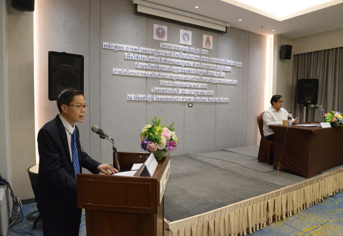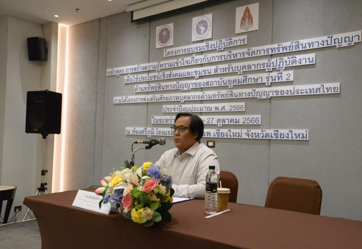 2023年10月26日,清迈大学校长助理Piyapong Niamsup(副教授、博士)出席于清迈阿莫拉塔佩酒店Sri Phum会议室举办的高等教育机构知识产权管理认知与理解的实践课程培训研讨会,并在会议开幕式上致欢迎辞。此次研讨会是基于2023财年泰国知识产权人才潜力培养项目而举办,并由泰国高等教育与科研创新推进与发展司代理司长Panphoemsak Arunee先生担任开幕式主席,旨在推进对知识产权管理的相关思路方针的认知与理解,从而迎合在各大高等教育机构中的角色.