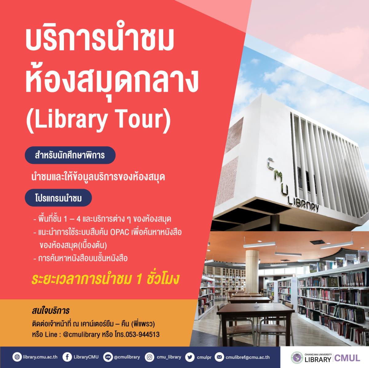 via Line ID:@cmulibrary or contact Ms.Noppamas Jantharapithank, Circulation desk on the first floor. CMUL