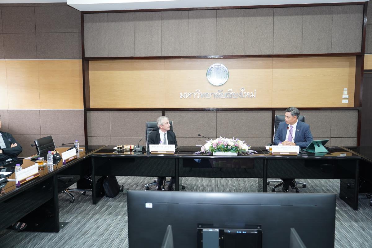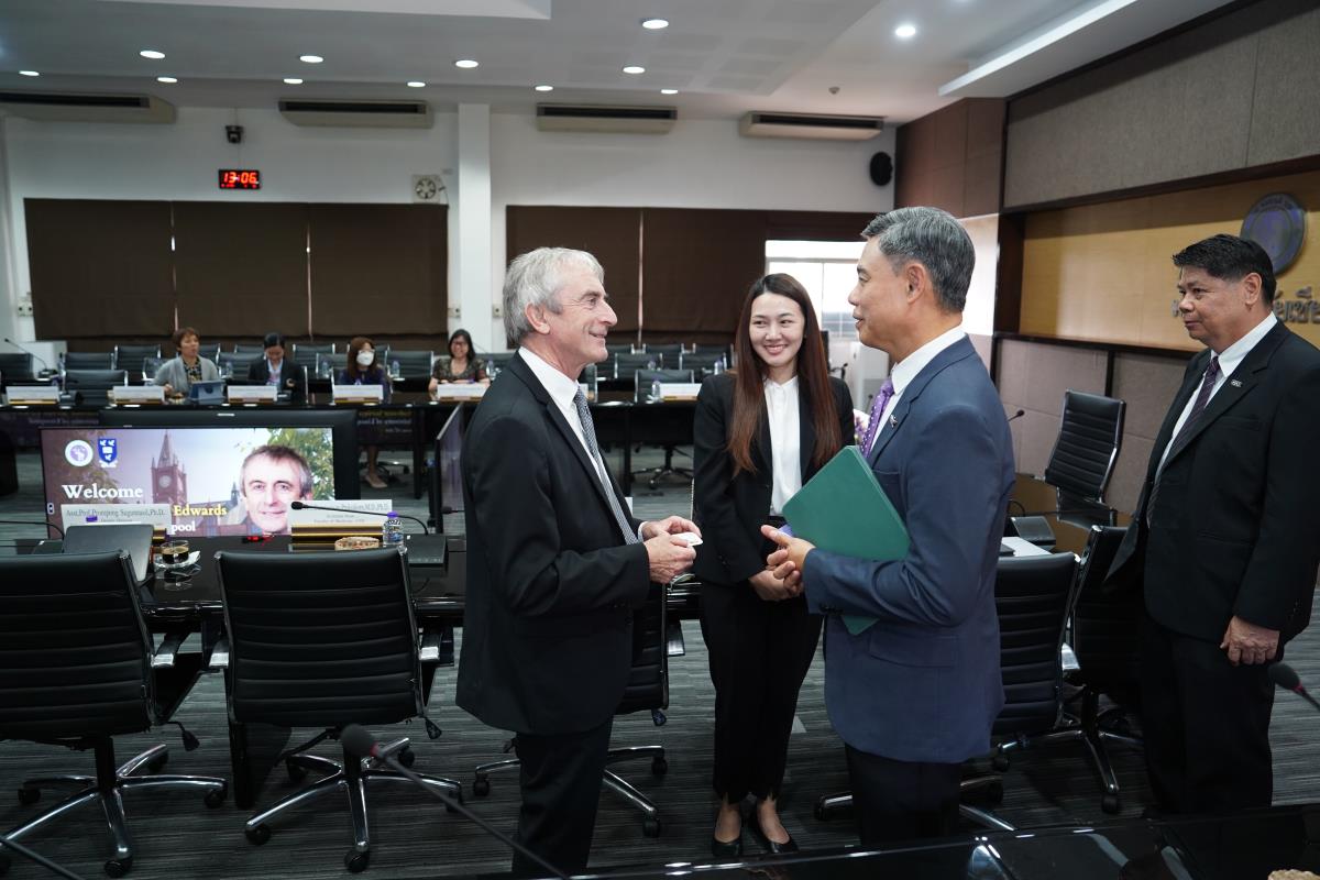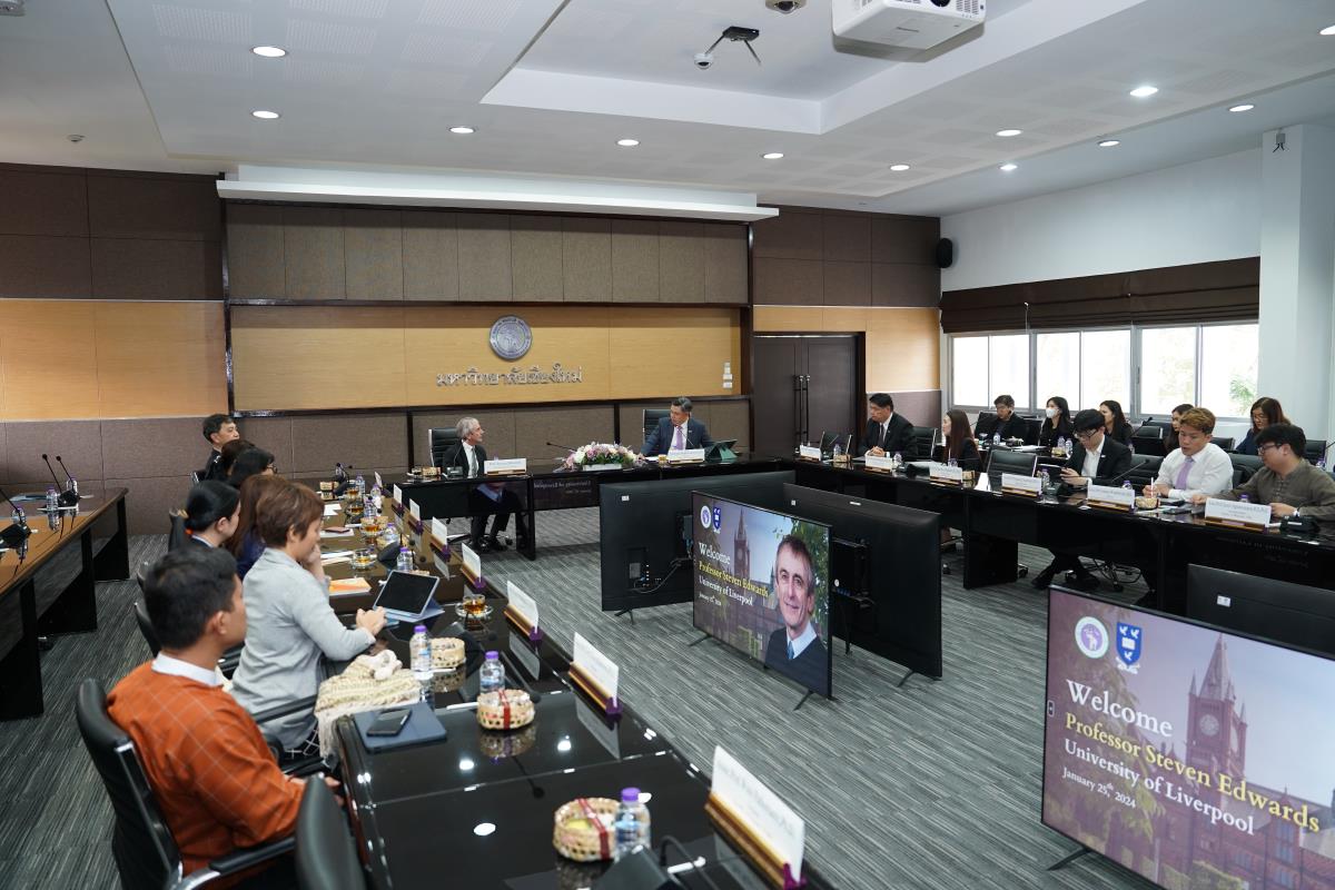 2024年1月25日,清迈大学校长Pongruk Sribanditmongkol(教授、博士)偕同学校行政管理层于清迈大学大学办公楼二号楼五层Bua Ret Khamthong会议室接待来自利物浦大学生物化学教授和高等教育学院首席研究员Steven Edwards教授一行到访,值此访问之际,双方就学术交流及两校合作事宜展开洽谈。