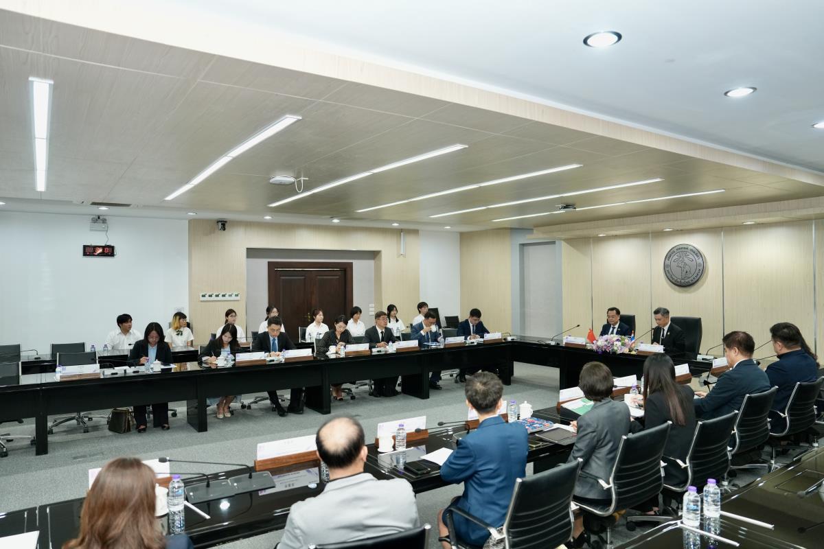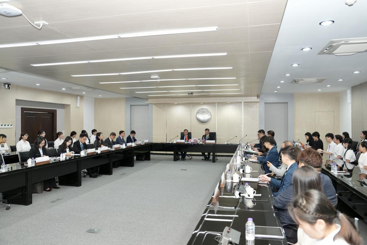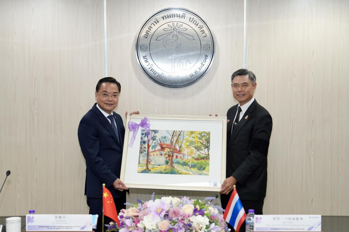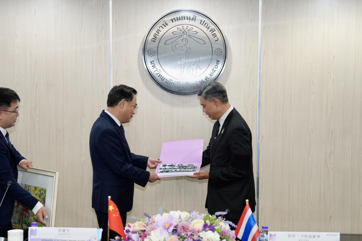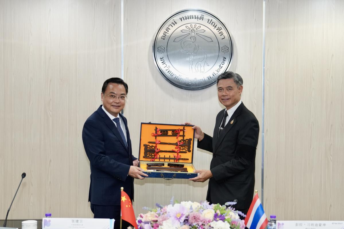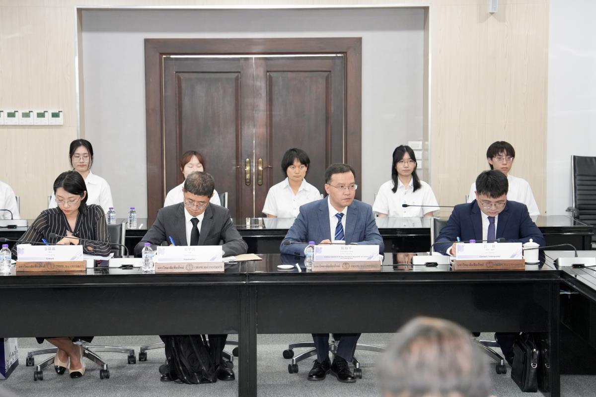 清迈大学校长 Pongruk Sribanditmongkol 教授(博士) 于 2025 年 11 月 26 日在清迈大学办公楼一层 Phraya Srivisnvacha 会议室,率学校管理团队隆重接待 中华人民共和国驻泰王国大使张建卫阁下及随行代表团。在此次访问中,双方就未来学术合作方向进行了深入交流,着重探讨推动清迈大学与中国高校在教育、科研与人才交流等领域的合作机遇。此行将进一步巩固与拓展清迈大学与中华人民共和国教育机构之间的战略合作关系。