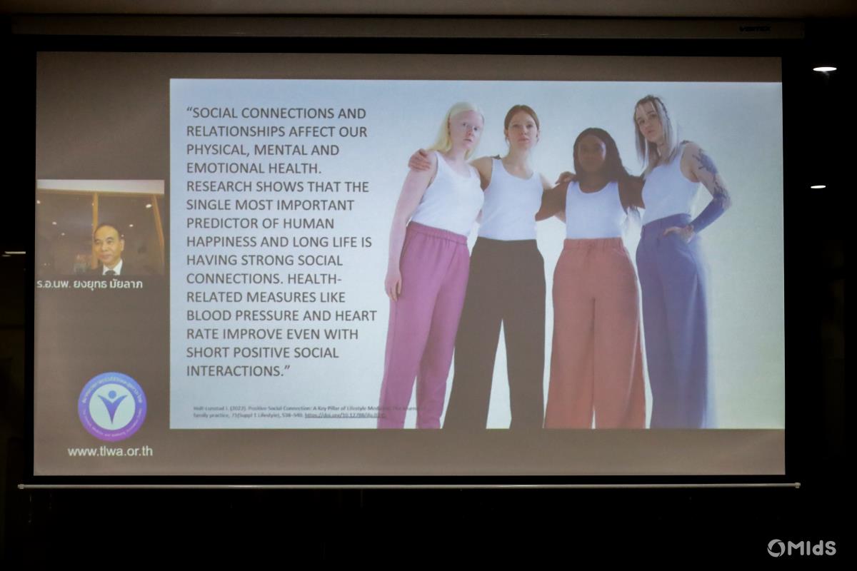 - "ความสัมพันธ์ในสังคม และข้อคิดการใช้เวลากับธรรมชาติ-เสาหลักที่ 7 แห่งอนาคต" วิทยากรโดย ร.อ.นพ.ยงยุทธ มัยลาภ นายกสมาคมเวชศาสตร์วิถีชีวิตและสุขภาวะไทย