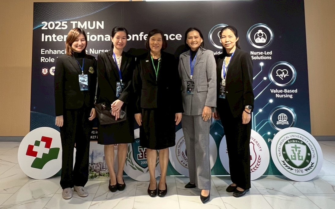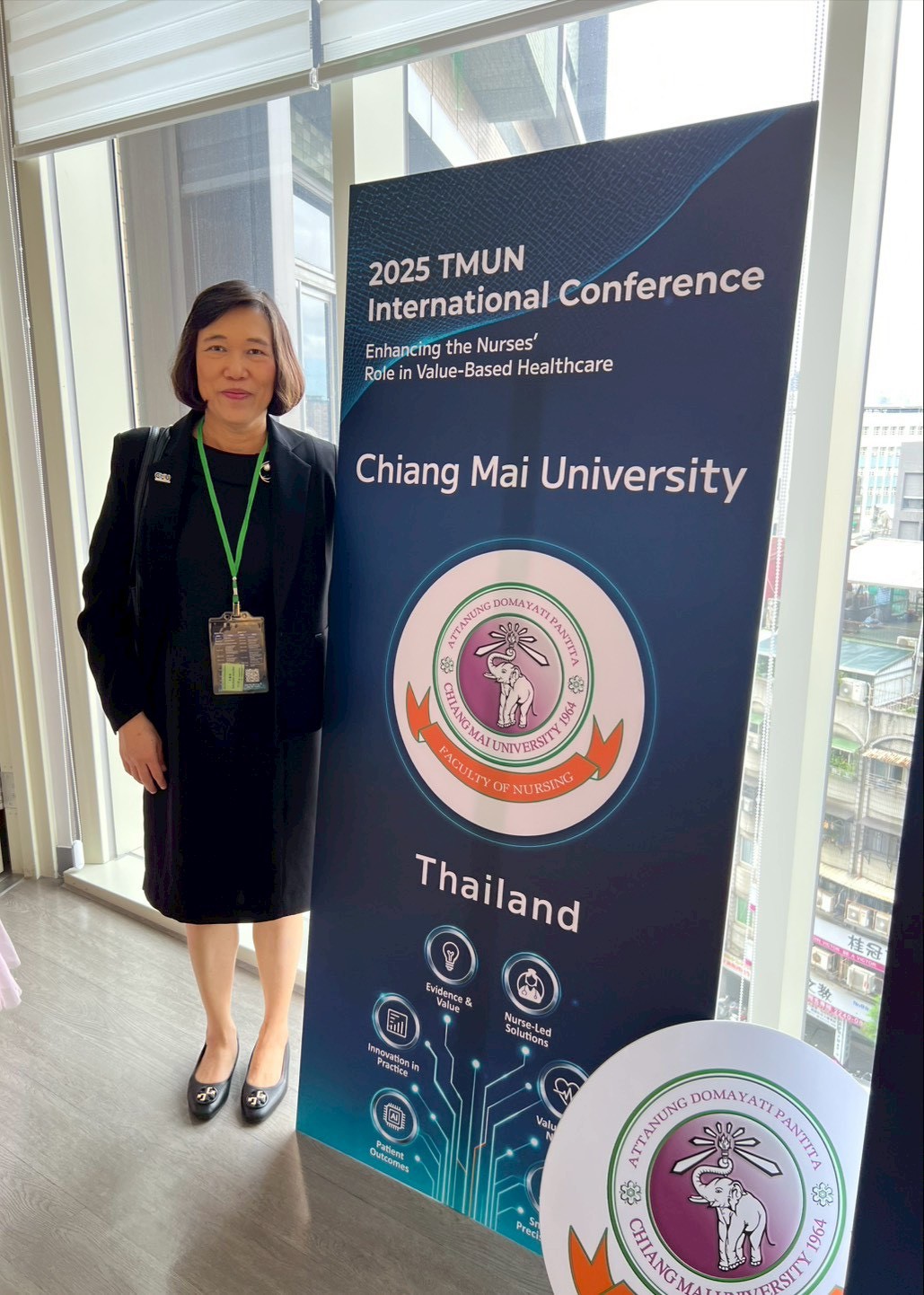 ผู้ช่วยศาสตราจารย์ ดร.สุภารัตน์ วังศรีคูณ คณบดี พร้อมด้วย อาจารย์ ดร.นงลักษณ์ เฉลิมสุข รองคณบดี รองศาสตราจารย์ ดร.นพมาศ ศรีเพชรวรรณดี ผู้ช่วยคณบดี ผู้ช่วยศาสตราจารย์ ดร.ปรียกมล ไกรกิจราษฎร์ ผู้ช่วยคณบดี คณาจารย์ และนักศึกษาระดับบัณฑิตศึกษา คณะพยาบาลศาสตร์ มหาวิทยาลัยเชียงใหม่ ร่วมงานประชุมวิชาการนานาชาติ 2025 Taipei Medical University College of Nursing International Conference ภายใต้หัวข้อ "Enhancing the Nurses' Role in Value-Based Healthcare" จัดโดย College of Nursing, Taipei Medical University ระหว่างวันที่ 6-7 พฤศจิกายน 2568 ณ Taipei Medical University, Shuangho Campus ไต้หวัน