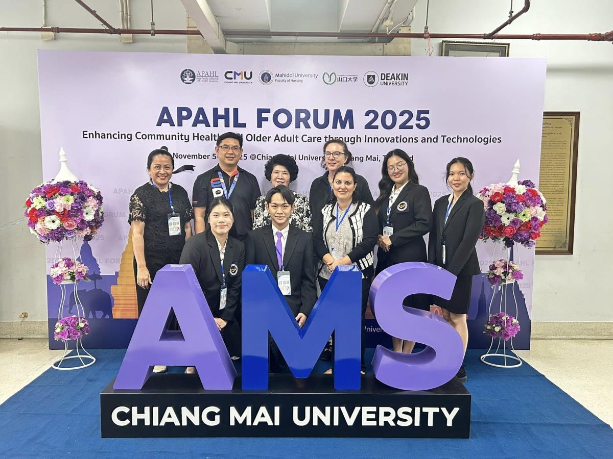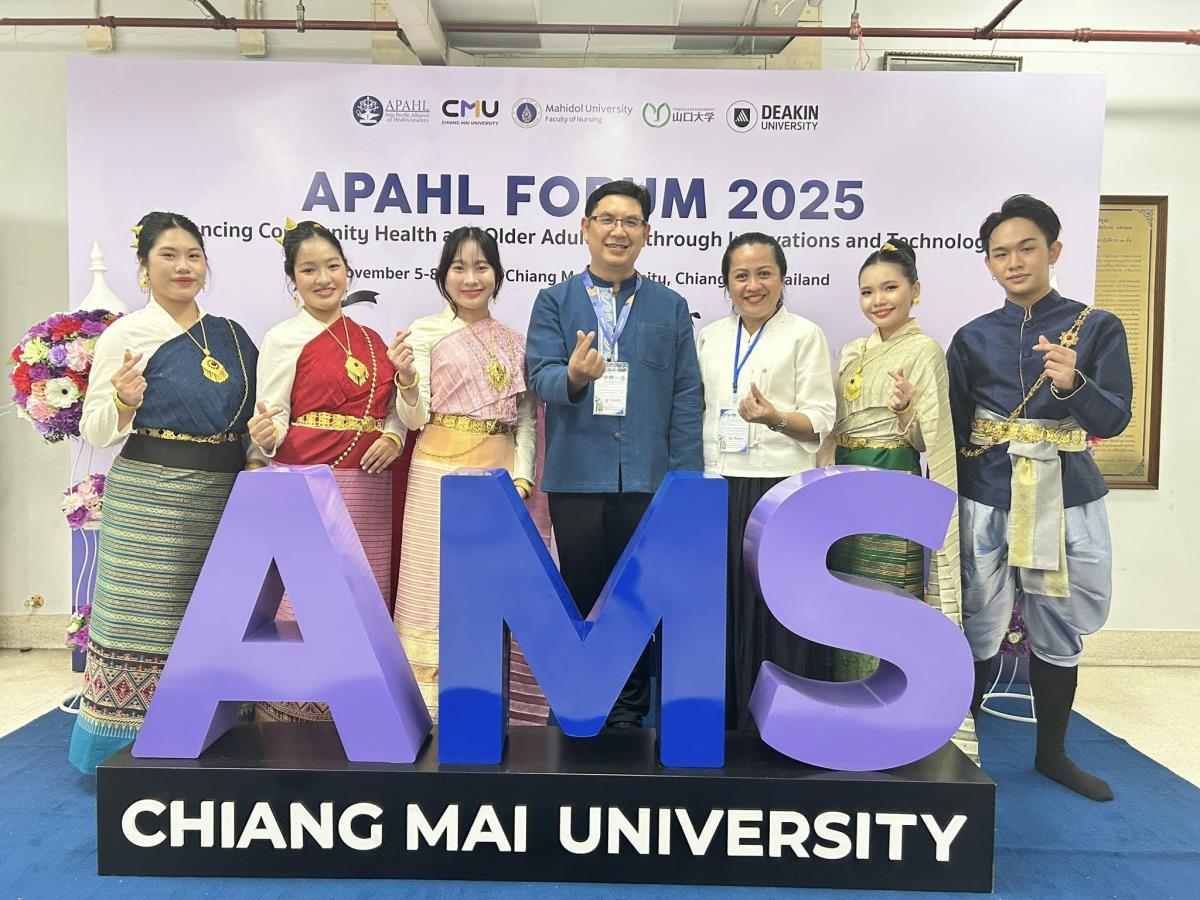 ผู้ช่วยศาสตราจารย์ ดร.อนนท์ วิสุทธิ์ธนานนท์ ผู้ช่วยคณบดี พร้อมด้วยคณาจารย์และนักศึกษาระดับปริญญาตรี คณะพยาบาลศาสตร์ มหาวิทยาลัยเชียงใหม่ เข้าร่วมการประชุม 2025 Asia-Pacific Alliance of Health Leaders (APAHL) Forum ภายใต้หัวข้อ "Enhancing Community Health and Older Adult Care through Innovations and Technologies" ระหว่างวันที่ 5-8 พฤศจิกายน 2568 ณ คณะเทคนิคการแพทย์ มหาวิทยาลัยเชียงใหม่