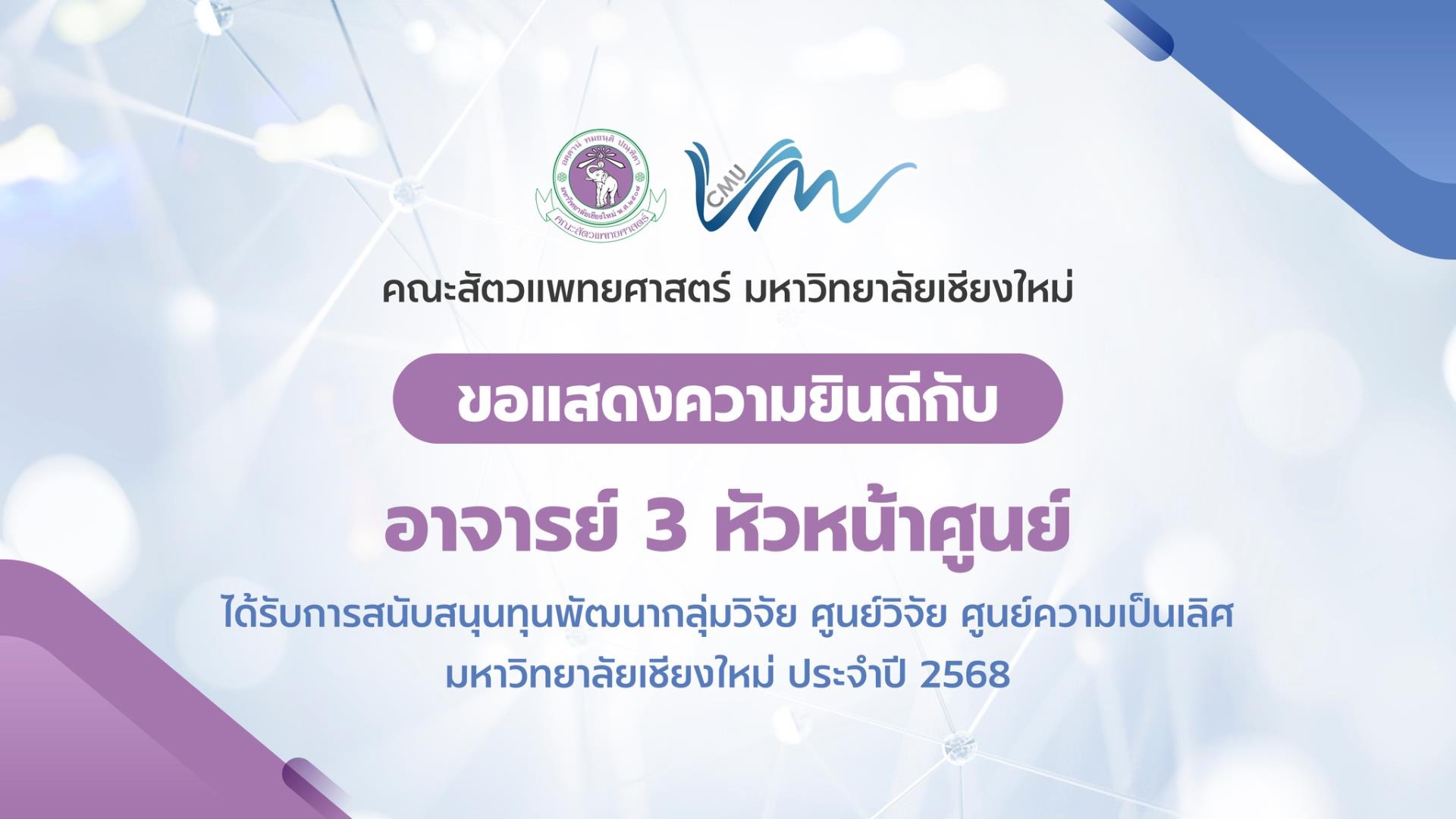 มหาวิทยาลัยเชียงใหม่มุ่งสร้างองค์ความรู้และนวัตกรรมที่ทันสมัย พร้อมพัฒนากำลังคนคุณภาพสูง เพื่อตอบโจทย์การเปลี่ยนแปลงของโลก และขับเคลื่อนสังคมสู่อนาคตที่ยั่งยืนด้วยวิทยาการและภูมิปัญญาที่ผสมผสานระหว่างเทคโนโลยีล้ำสมัยกับรากฐานทางวัฒนธรรมที่เข้มแข็ง