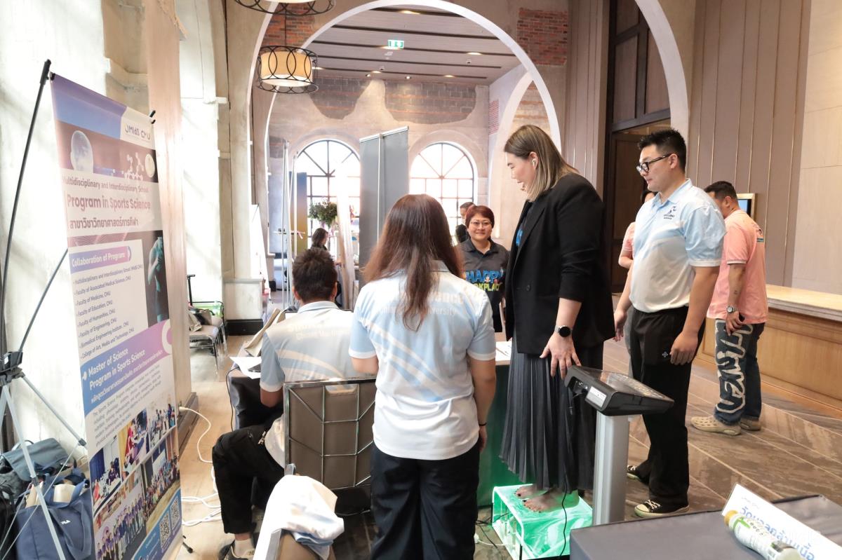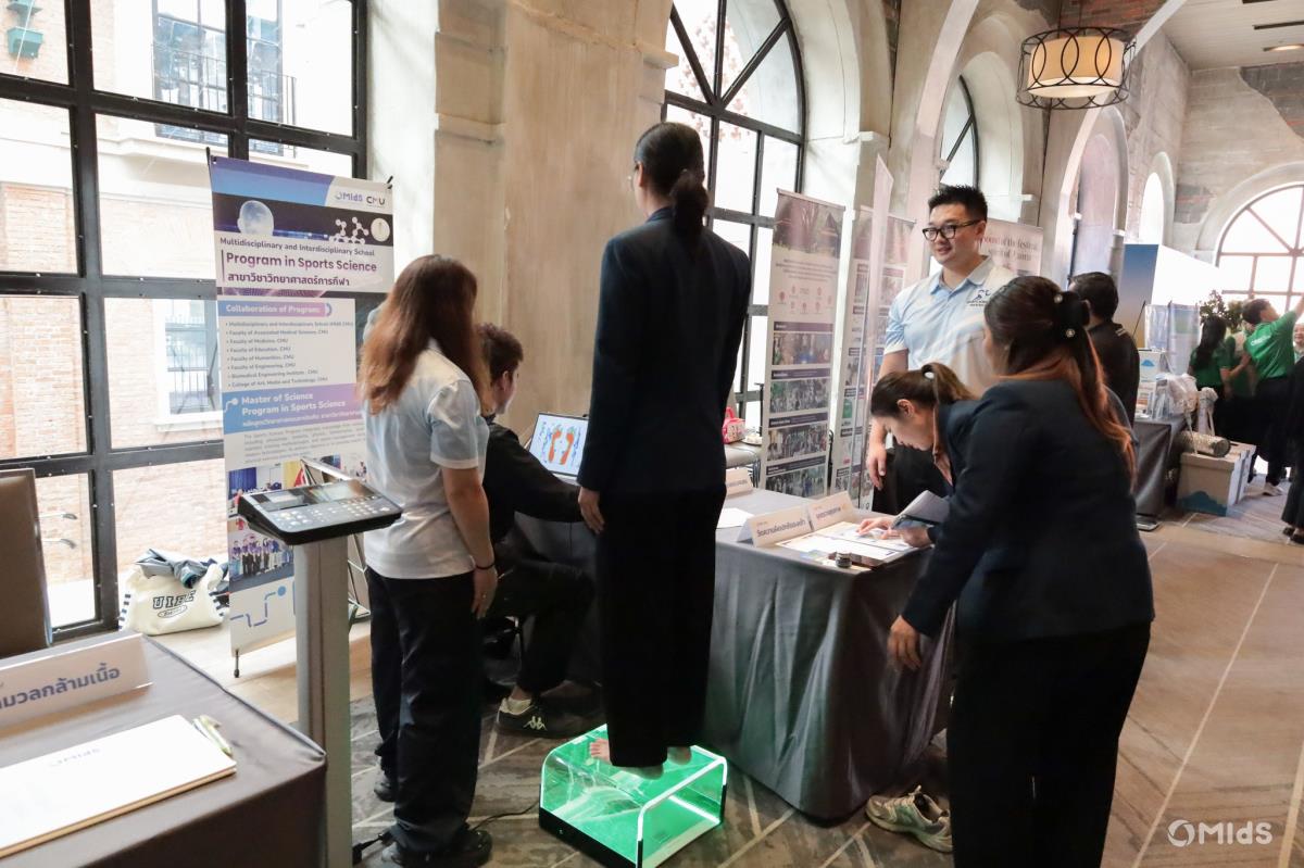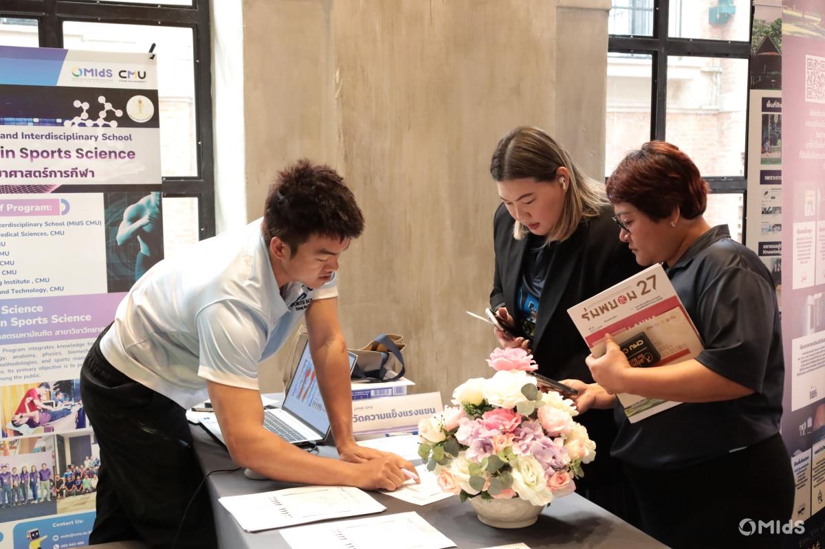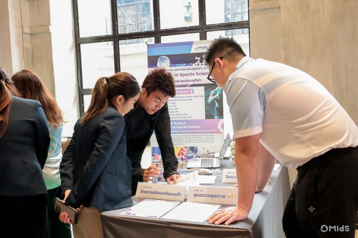 On this occasion, Sports Science Program, MIdS CMU, also organized a program promotion booth featuring various health-related activities for visitors. These included free health assessments, such as muscle mass measurement, foot abnormality screening, arm strength testing, as well as fun interactive games like a prize wheel giveaway. The event was held at Nimman Convention Center, Chiang Mai.