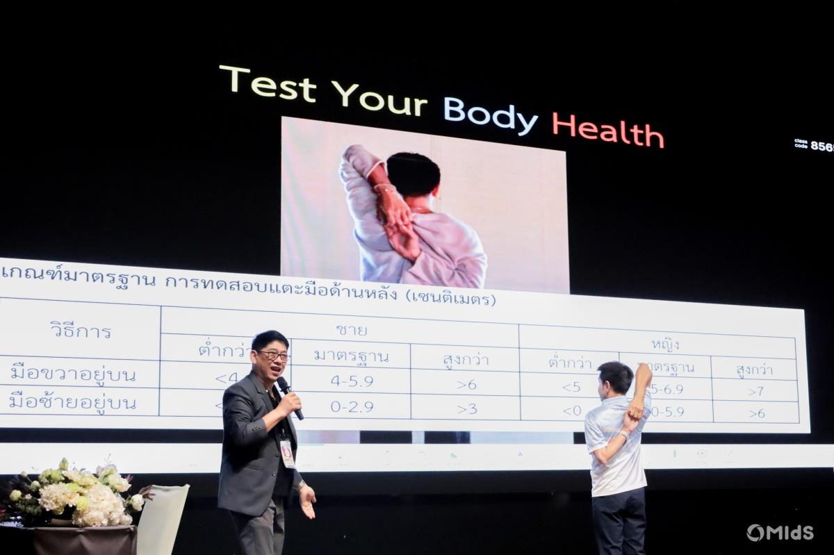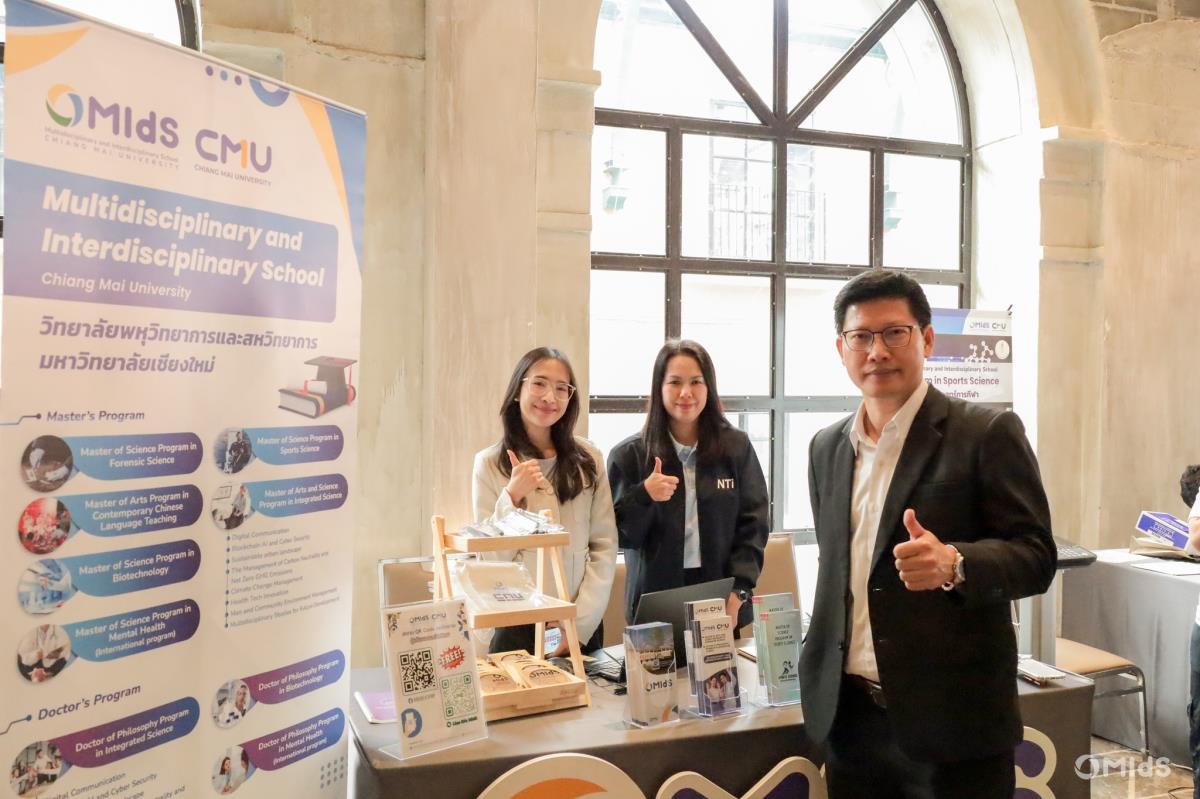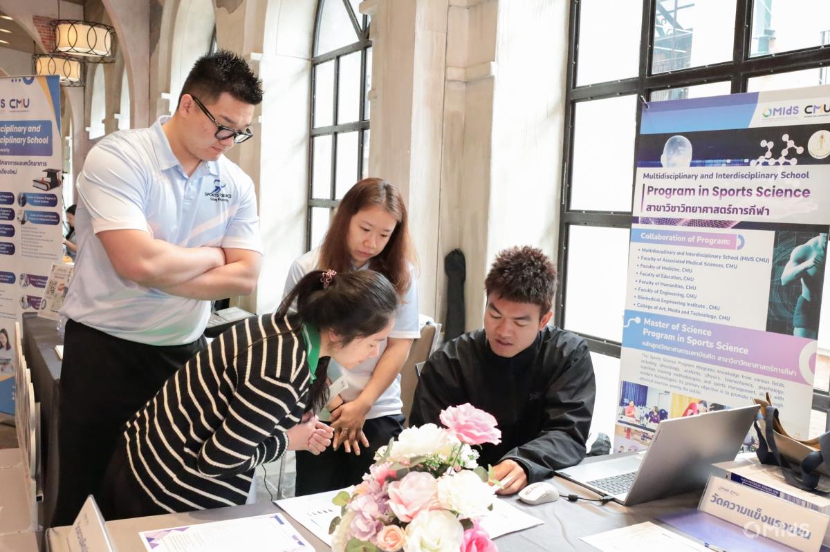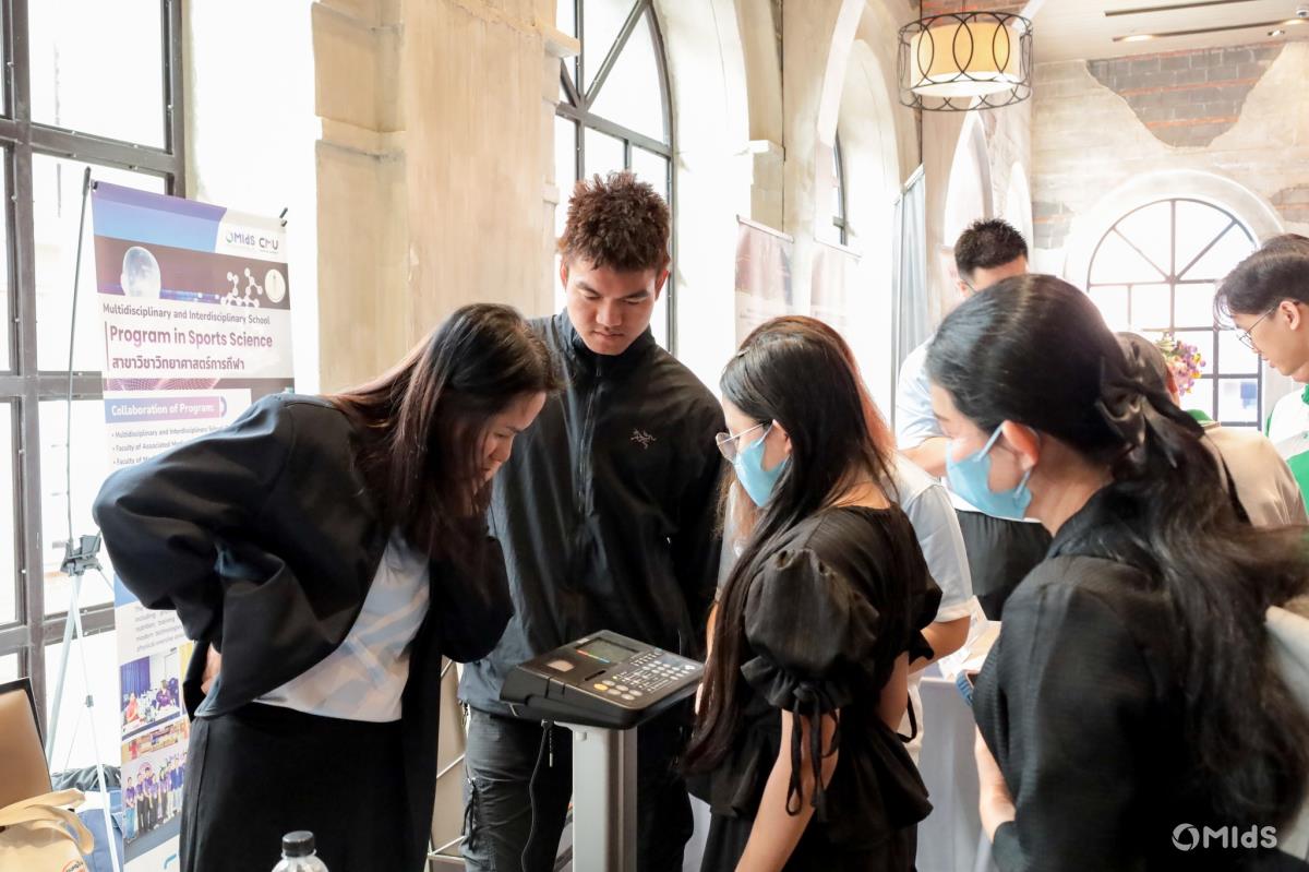 On this occasion, Sports Science Program, MIdS CMU, also organized a program promotion booth featuring various health-related activities for visitors. These included free health assessments, such as muscle mass measurement, foot abnormality screening, arm strength testing, as well as fun interactive games like a prize wheel giveaway. The event was held at Nimman Convention Center, Chiang Mai.