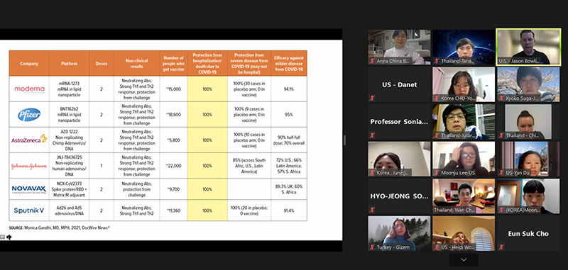 On 26 March 2021, The students and faculty members of the Faculty of Nursing, Chiang Mai University participated in the 2nd Virtual Global Health Hub: COVID Vaccines and Vaccination through the Zoom Meetings platform organized by the University of Texas Health Science Center at San Antonio - UT Health San Antonio, U.S.A. The purpose to exchanging information for vaccine research, type of vaccine - storage, and information on vaccination of each county participating.