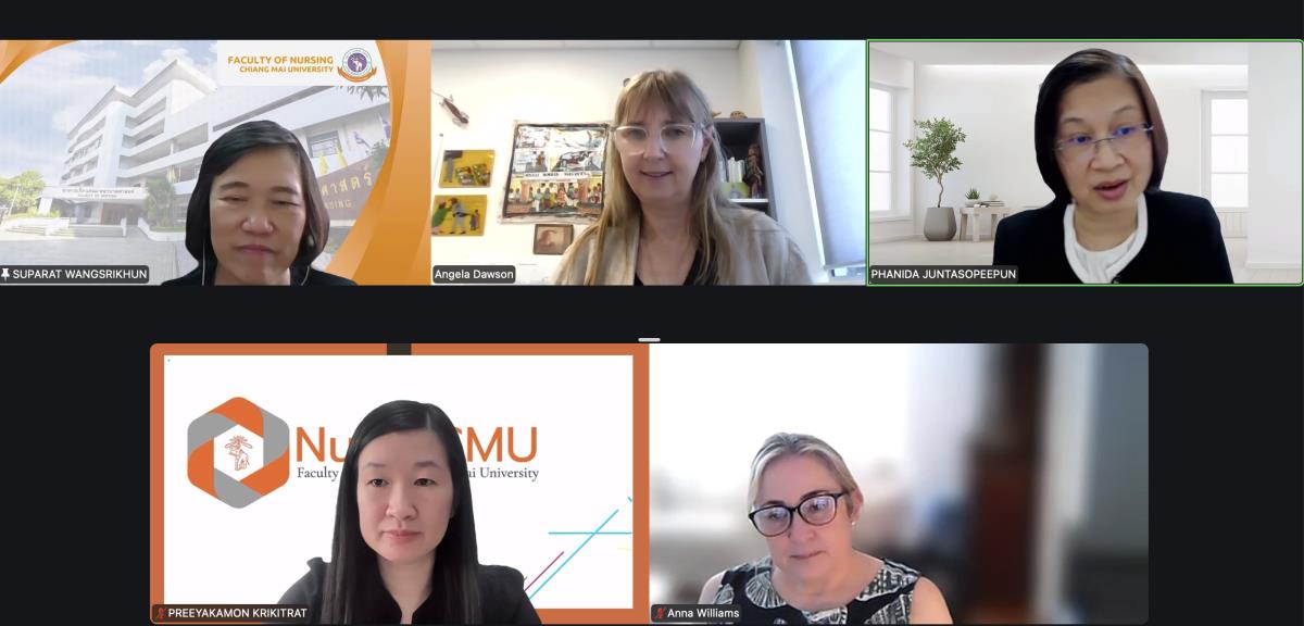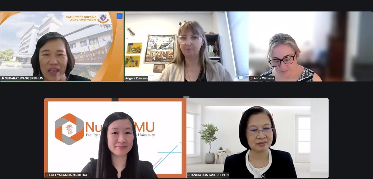 On Wednesday, December 17, 2025, the Faculty of Nursing, Chiang Mai University, led by Assistant Professor Dr. Suparat Wangsrikhun, Dean, held an online meeting with academic leaders from the University of Technology Sydney (UTS), Australia, to explore opportunities for international research collaboration.