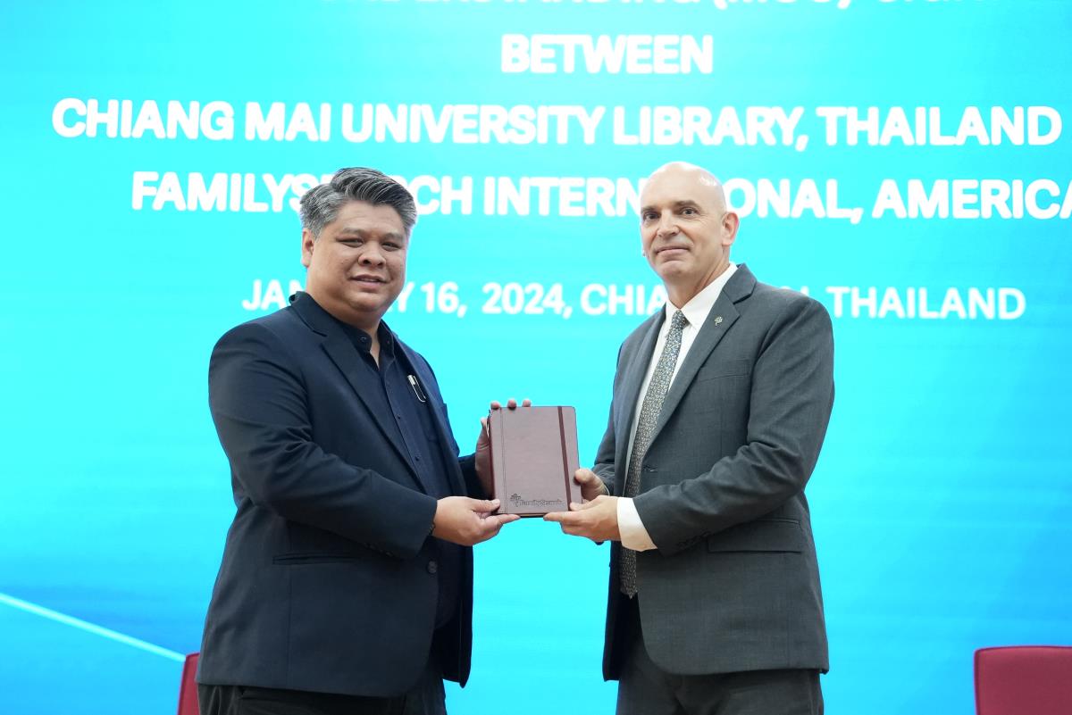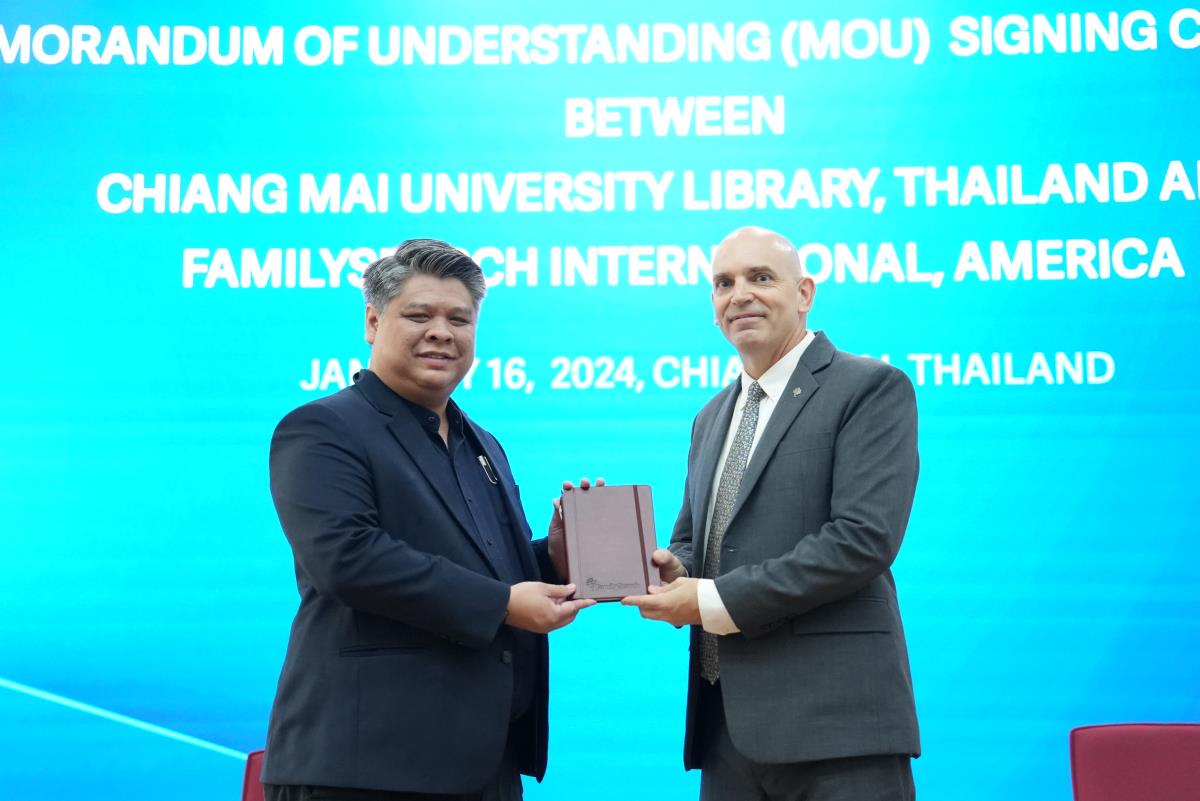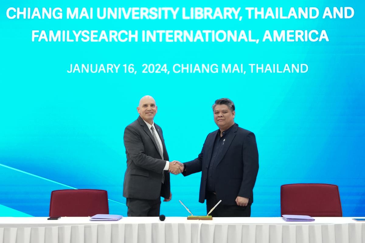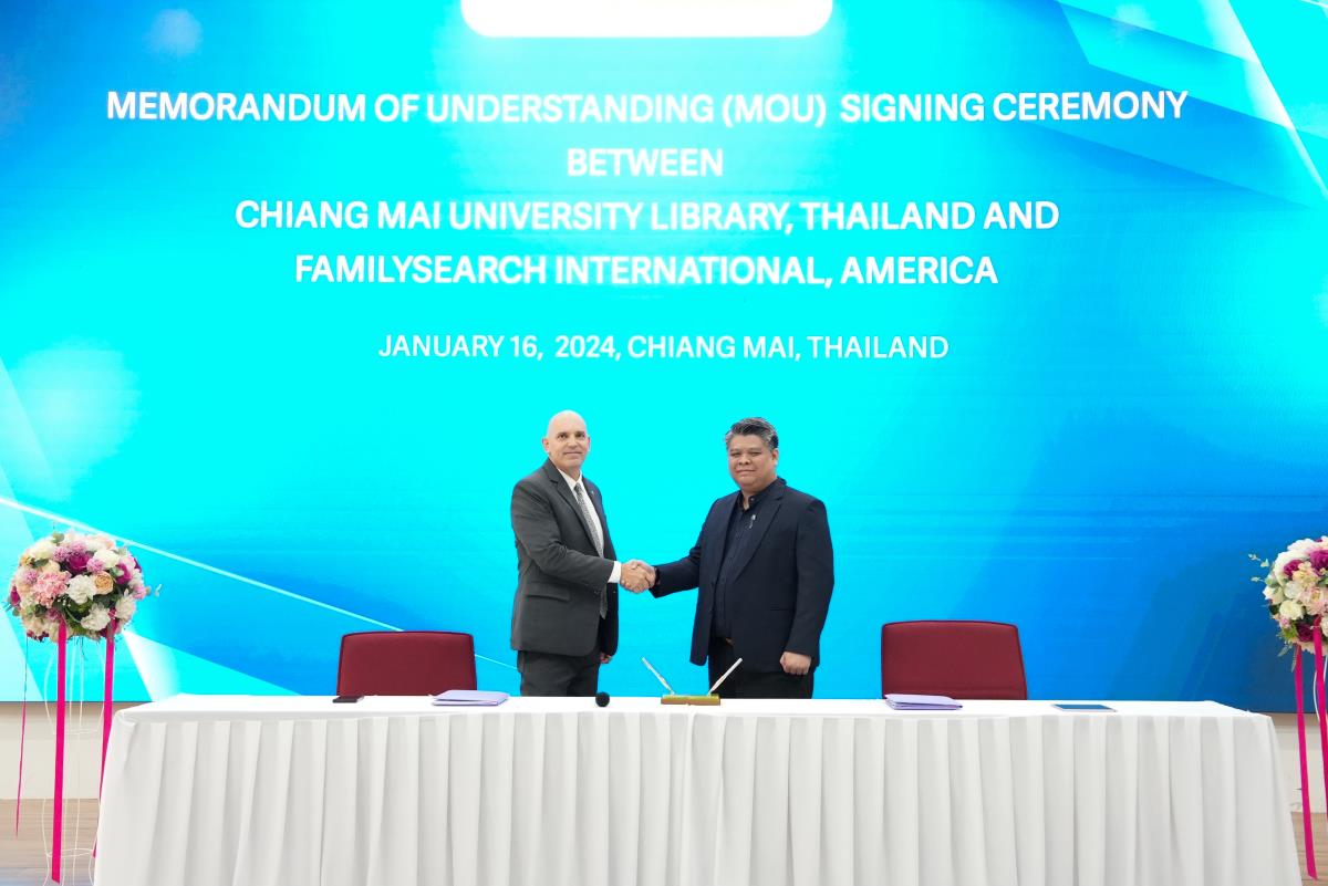The signing of the MOU between Chiang Mai University Library and FamilySearch International occurred because the Chiang Mai University Library possesses valuable and rare informational resources that require urgent conservation and preservation, such as rare books, heritage documents, audiovisual materials, Lanna and Northern Thai publications. FamilySearch International recognized the value of these rare resources and expressed their intention to support the preservation of these resources in digital format. This initiative aims to conserve, preserve, and disseminate informational resources for education, research, and study purposes.