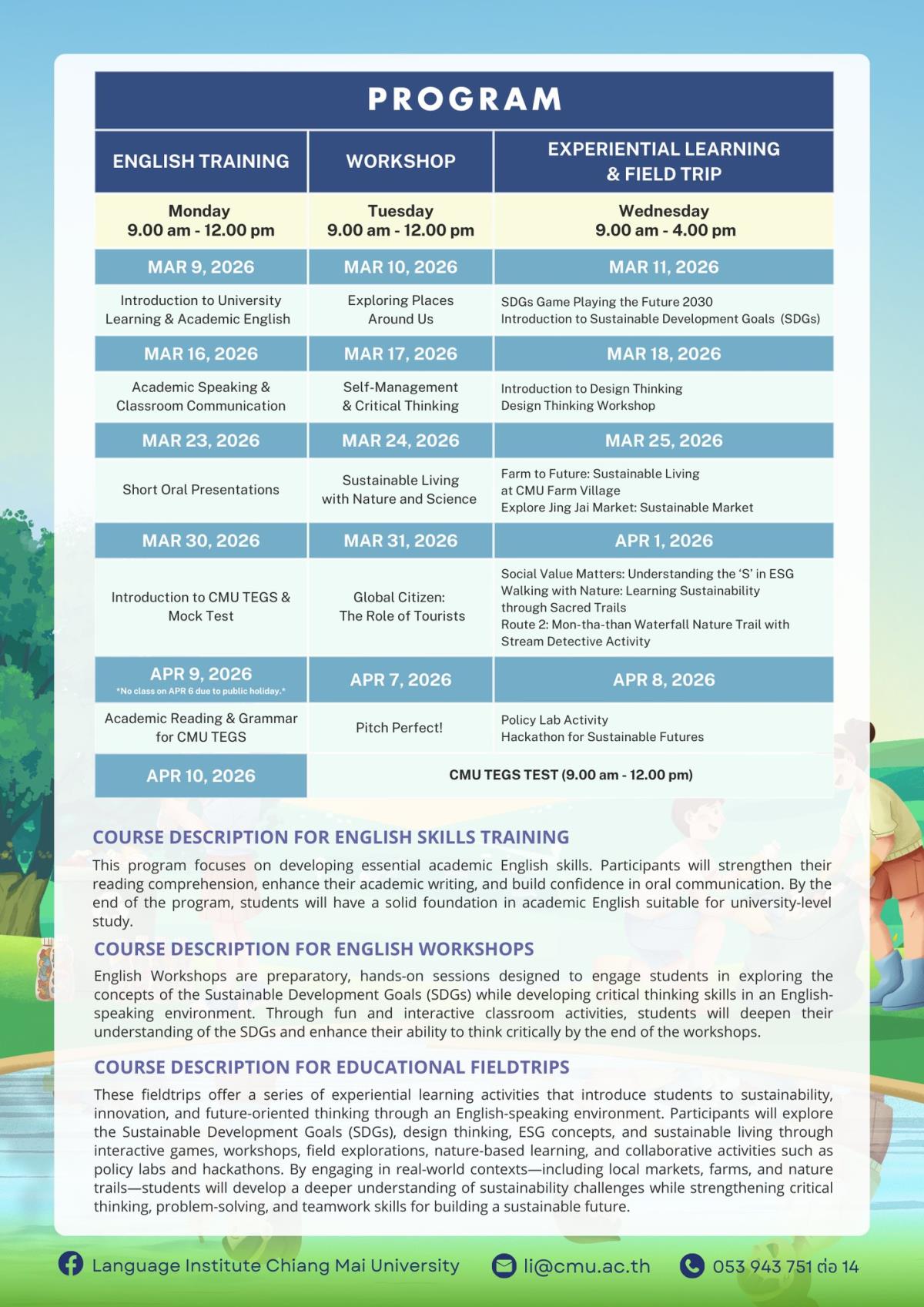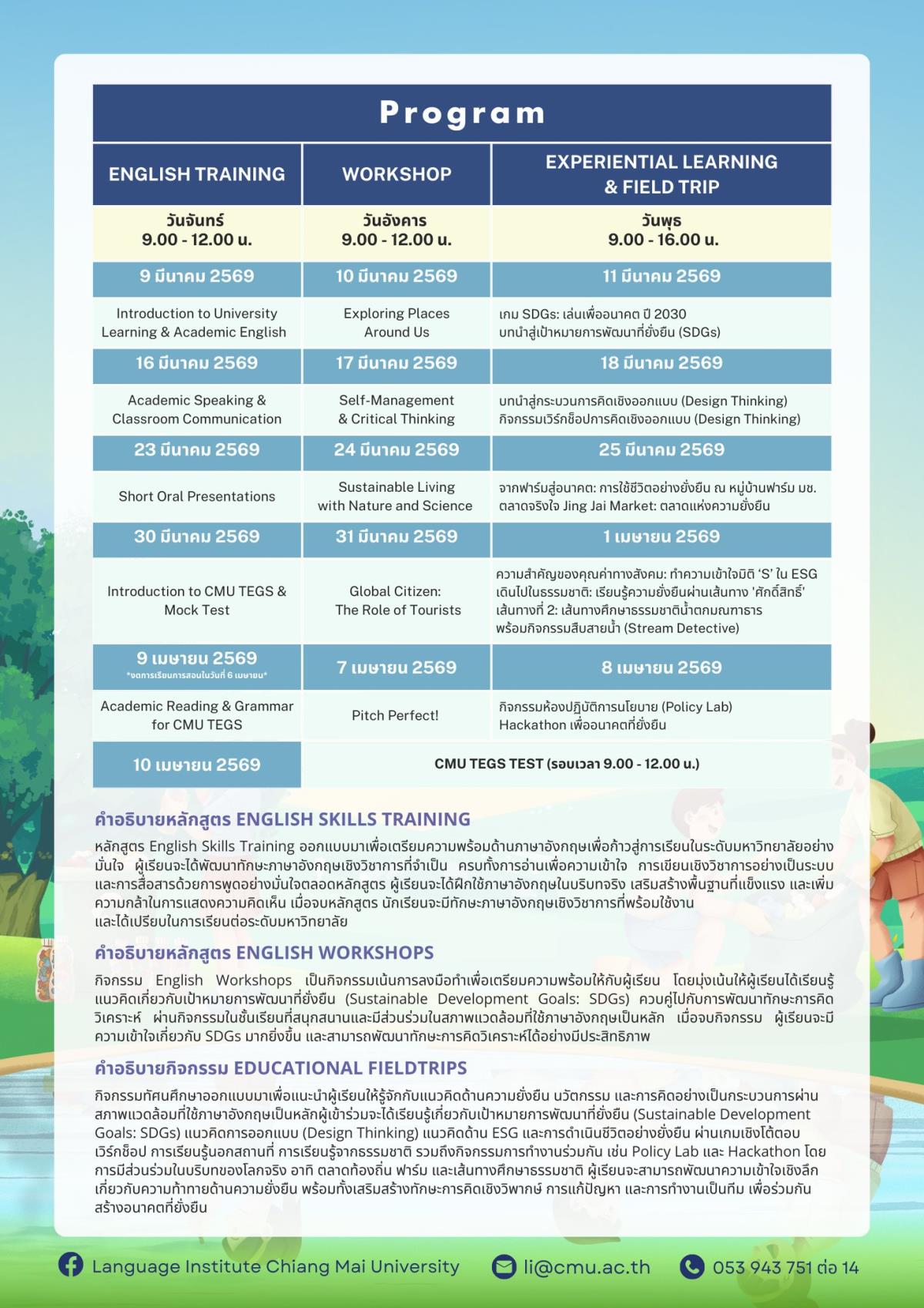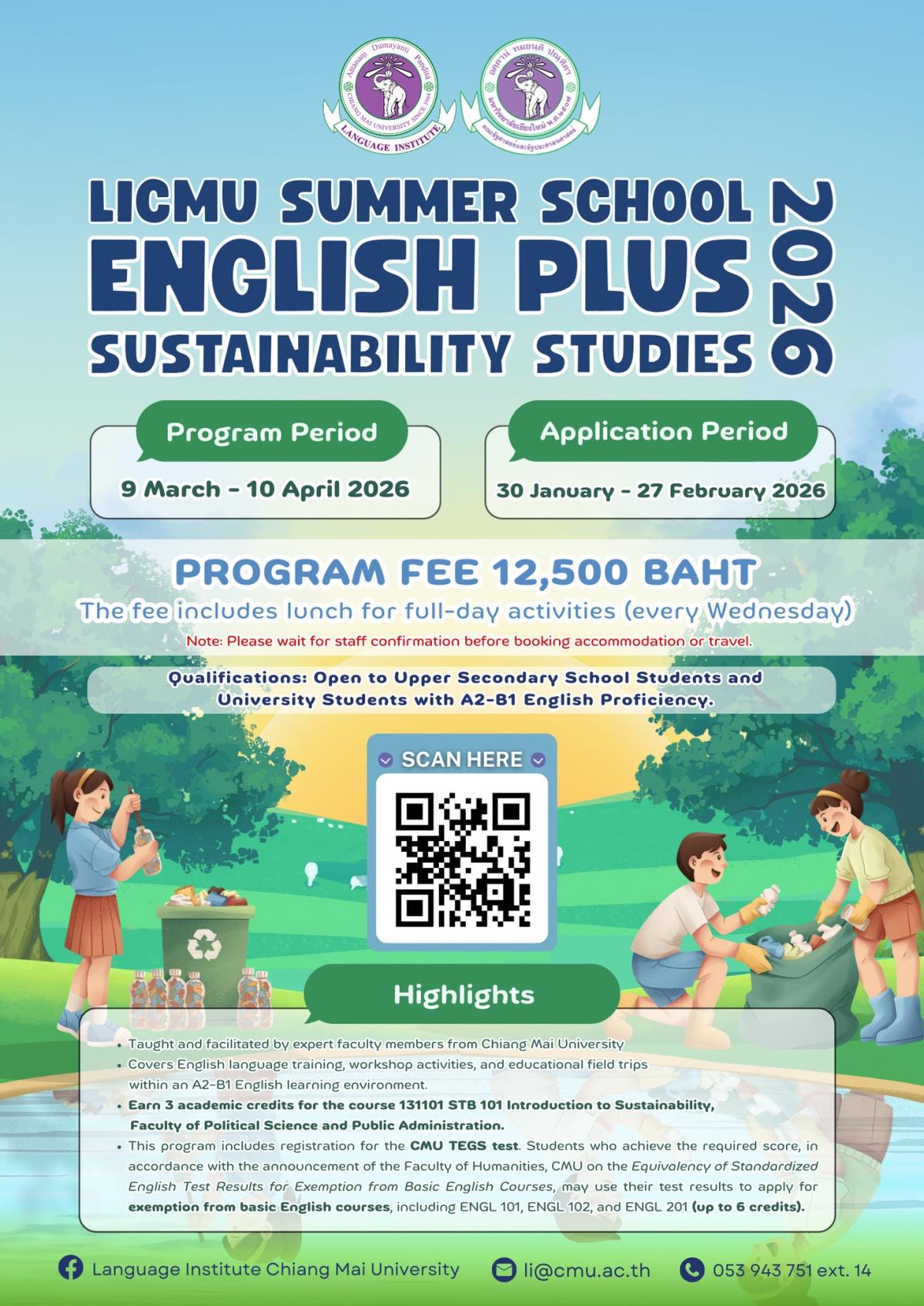 Language Institute Chiang Mai University, in collaboration with the Faculty of Political Science and Public Administration, is now accepting applications from high school and university students to join