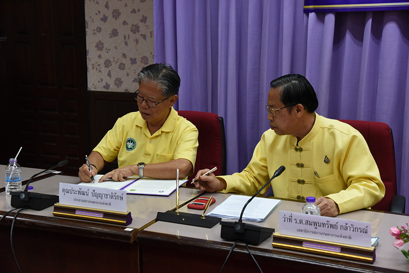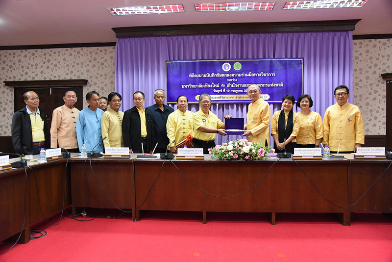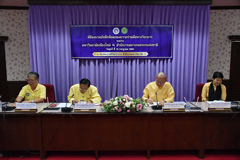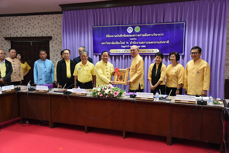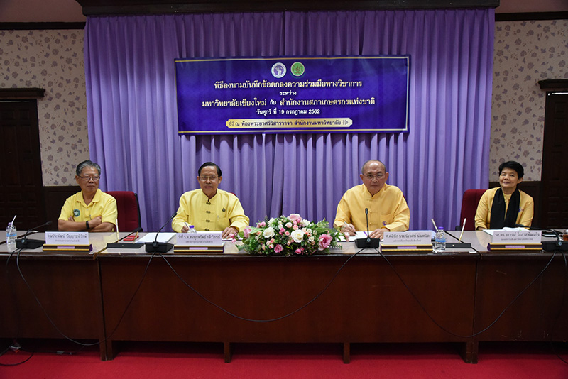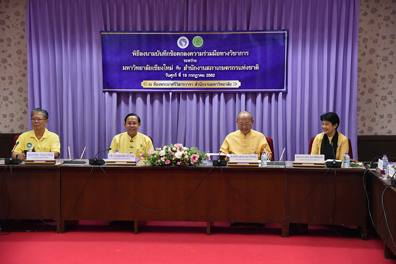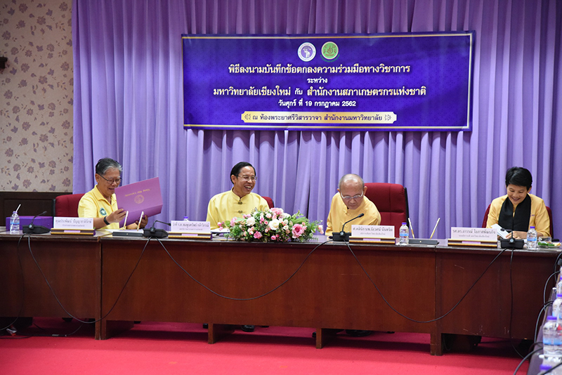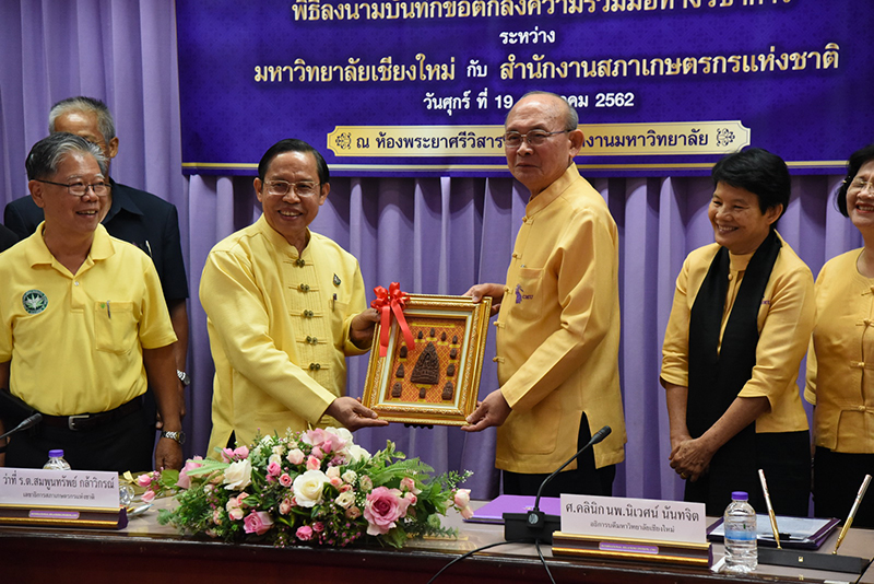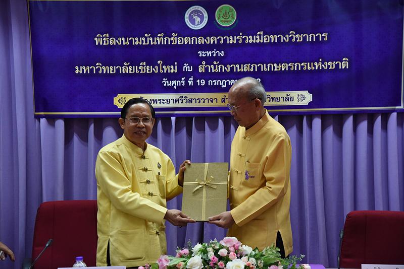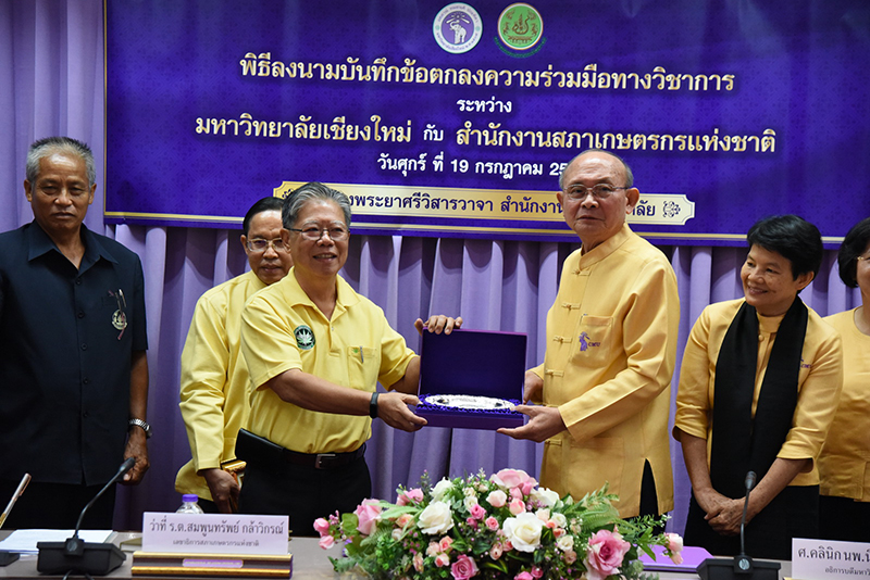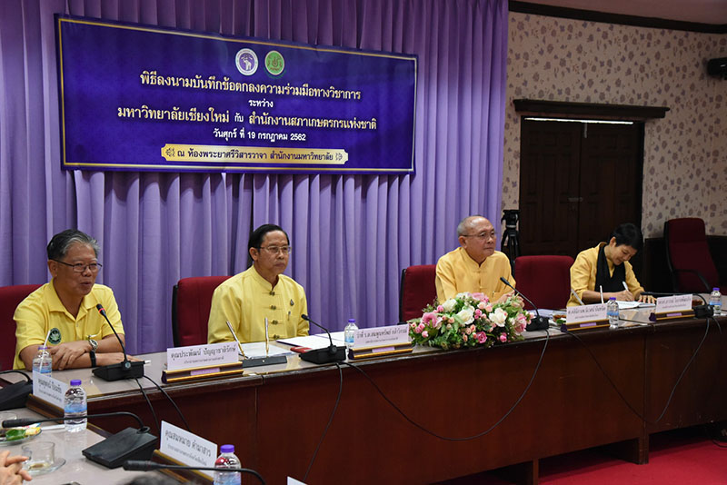 Clinical Professor Niwes Nantachit, M.D., President of Chiang Mai University signed a memorandum of cooperation with Dr. Sompoonsub Klavikorn, Secretary General of the National Farmer Council on July 19, 2019, at CMU’s University Office with Mr. Prapat Panyachatraksa, Chairman of the National Farmer Council as a witness. The purpose of the collaboration between CMU and the National Farmer Council of Thailand is to create and develop agricultural technology by promoting agricultural research and enhancing expertise skills, in addition to their "The Farmer's Heir Project".