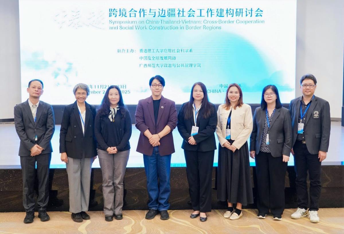 The Faculty of Social Sciences, Chiang Mai University, sent a delegation of six faculty members to participate in the “Symposium on China–Thailand–Vietnam Cross-Border Cooperation and Social Work Construction in Border Regions,” held from 21–23 November 2025 in Guilin, Guangxi Zhuang Autonomous Region, People’s Republic of China. The symposium was hosted by Guangxi Normal University in collaboration with The Hong Kong Polytechnic University (PolyU), with academic support from partner universities in China and Vietnam. The event provided an important platform for scholars from the three countries to exchange insights on social policy, cross-border social work, community development, and issues of inequality in border regions.