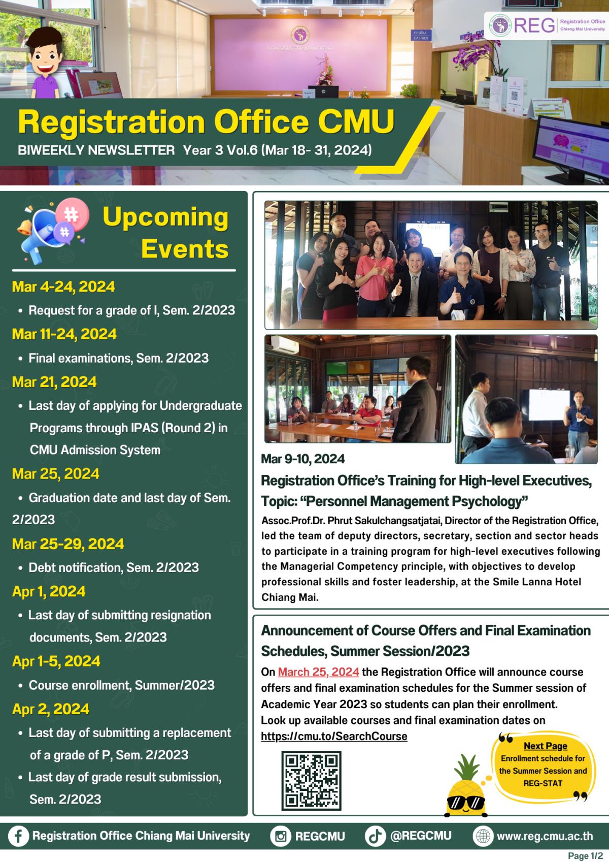 CMU Registration Office Biweekly Newsletter Vol.6 (Mar 18-31, 2024)