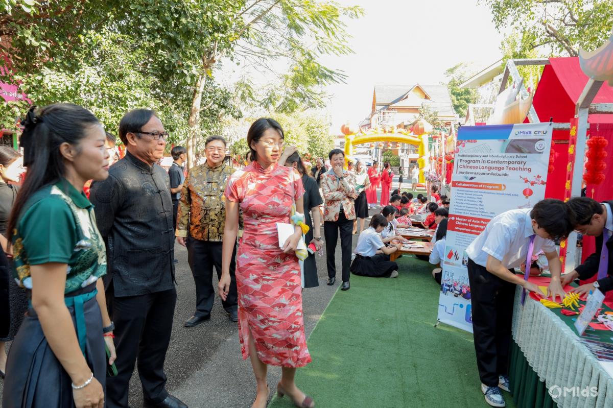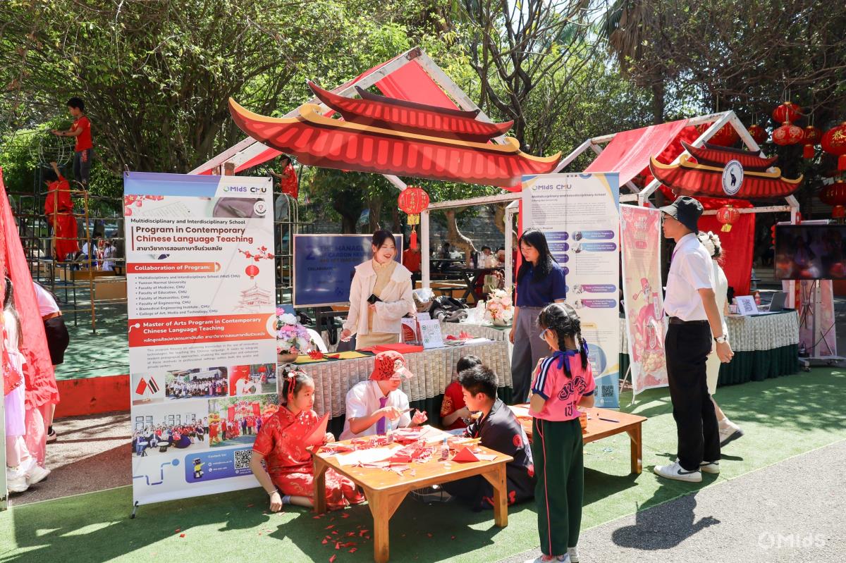 On this occasion, staff members of Contemporary Chinese Language Teaching Program, MIdS CMU, organized a program promotion booth featuring interactive activities for students. These included a Chinese character paper-cutting workshop and a demonstration of Chinese language instruction, jointly conducted by master’s students from the Contemporary Chinese Language Teaching Program for primary school students at Anubaan Chiang Mai School.
