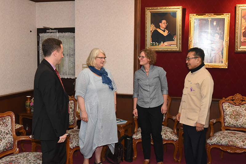 CMU’s Vice President Associate Professor Rome Chiranukrom, accompanied with executives welcomed Dr. Ingrid Ragge, Managing Director, International Graduate School for Dynamics in Logistics and Dr. Annette Lang, Head of International Relation Office, University of Bremen, German during their visit to Chiang Mai University 12th December, 2019.