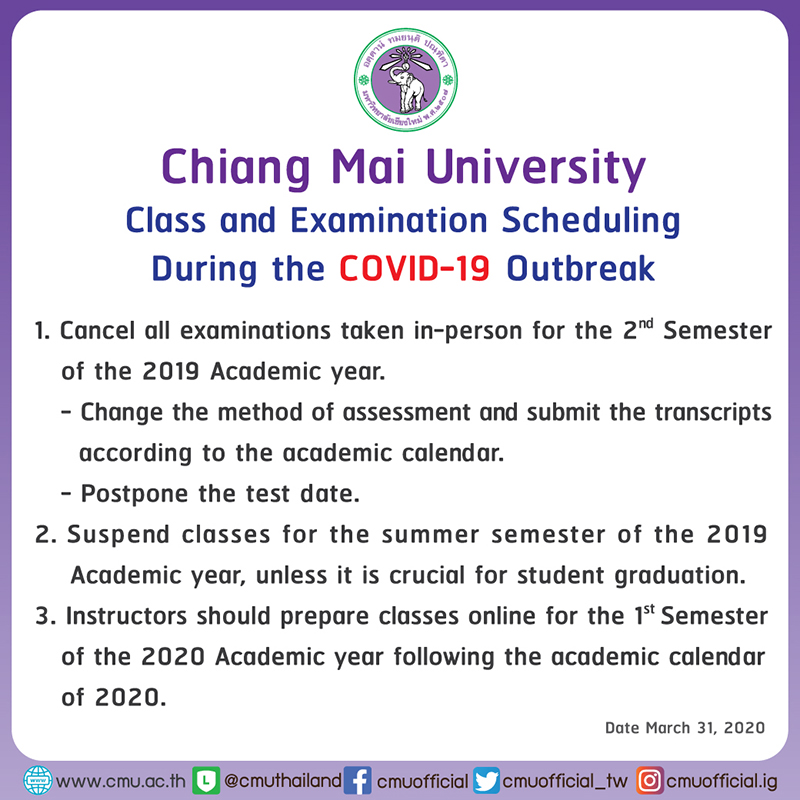 Chiang Mai University Class and Examination Scheduling During the COVID-19 Outbreak