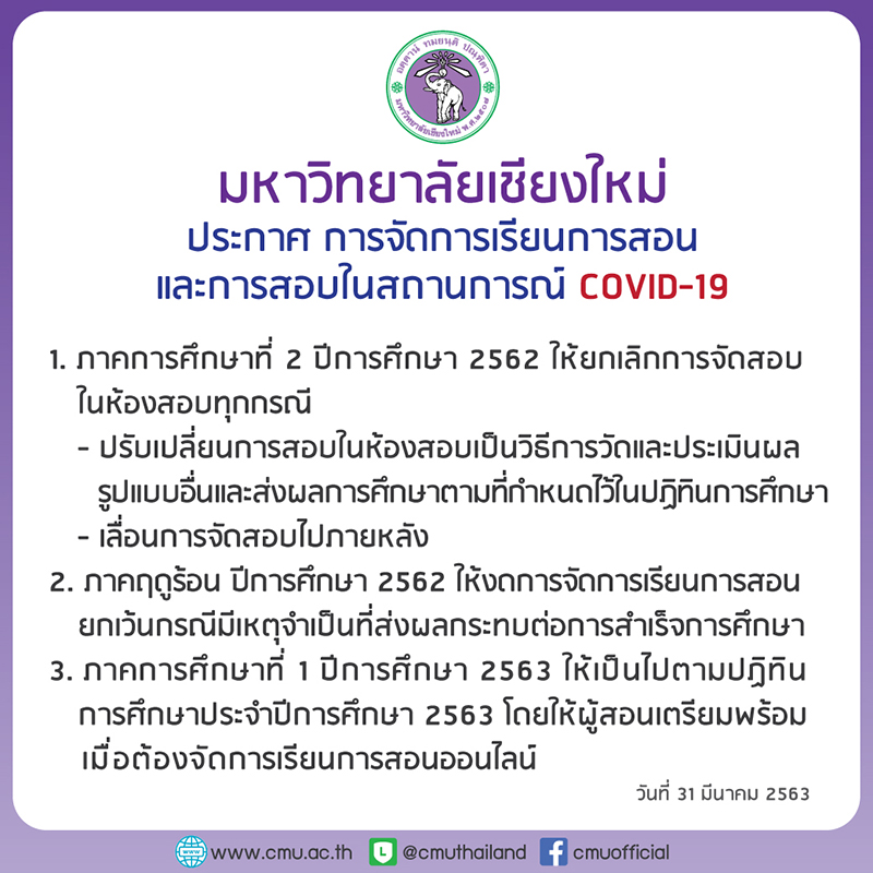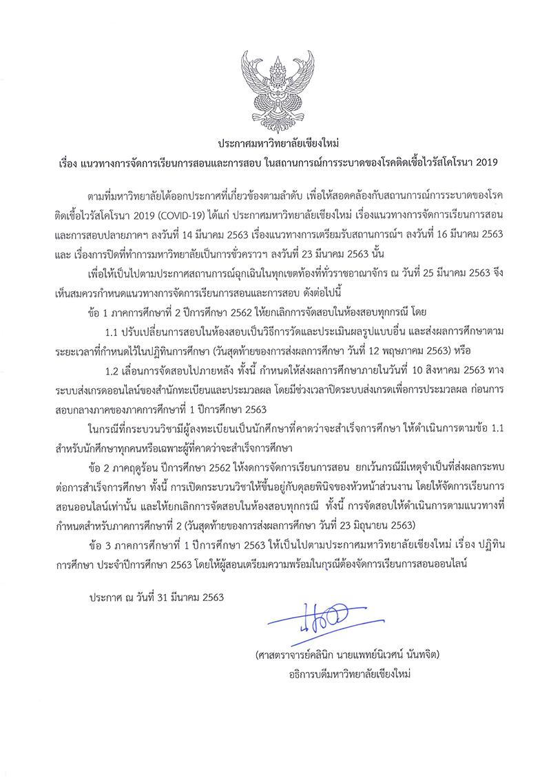 ประกาศมช.แนวทางการจัดการเรียนการสอนและการสอบ