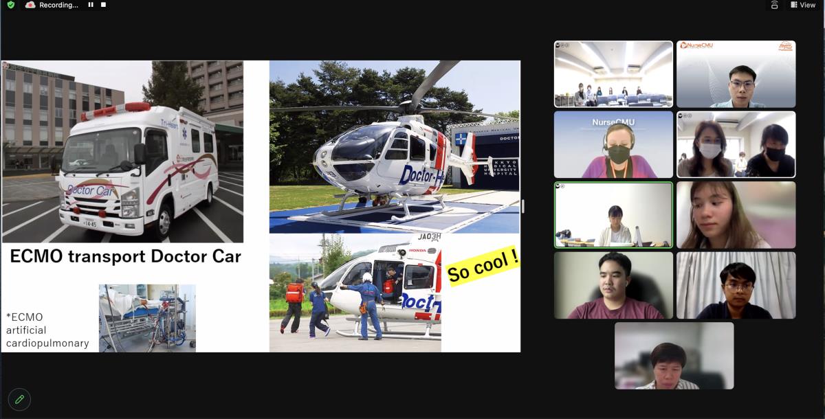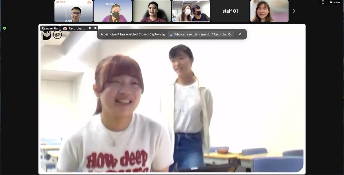 Chiang Mai University's Faculty of Nursing collaborated with the School of Nursing, Dokkyo Medical University in Japan to host an online seminar on "The Use of Technology in Nursing Care." The goal was to share nursing expertise and technology between Thailand and Japan. Both sets of students practiced discussing ideas to develop technology in nursing care in order to make it more effective, as well as presenting data jointly. The activity was held via the Zoom Meeting Platform on Wednesday, June 7th, 2023. The seminar was attended by three nursing students from each side, as well as 25 observers.