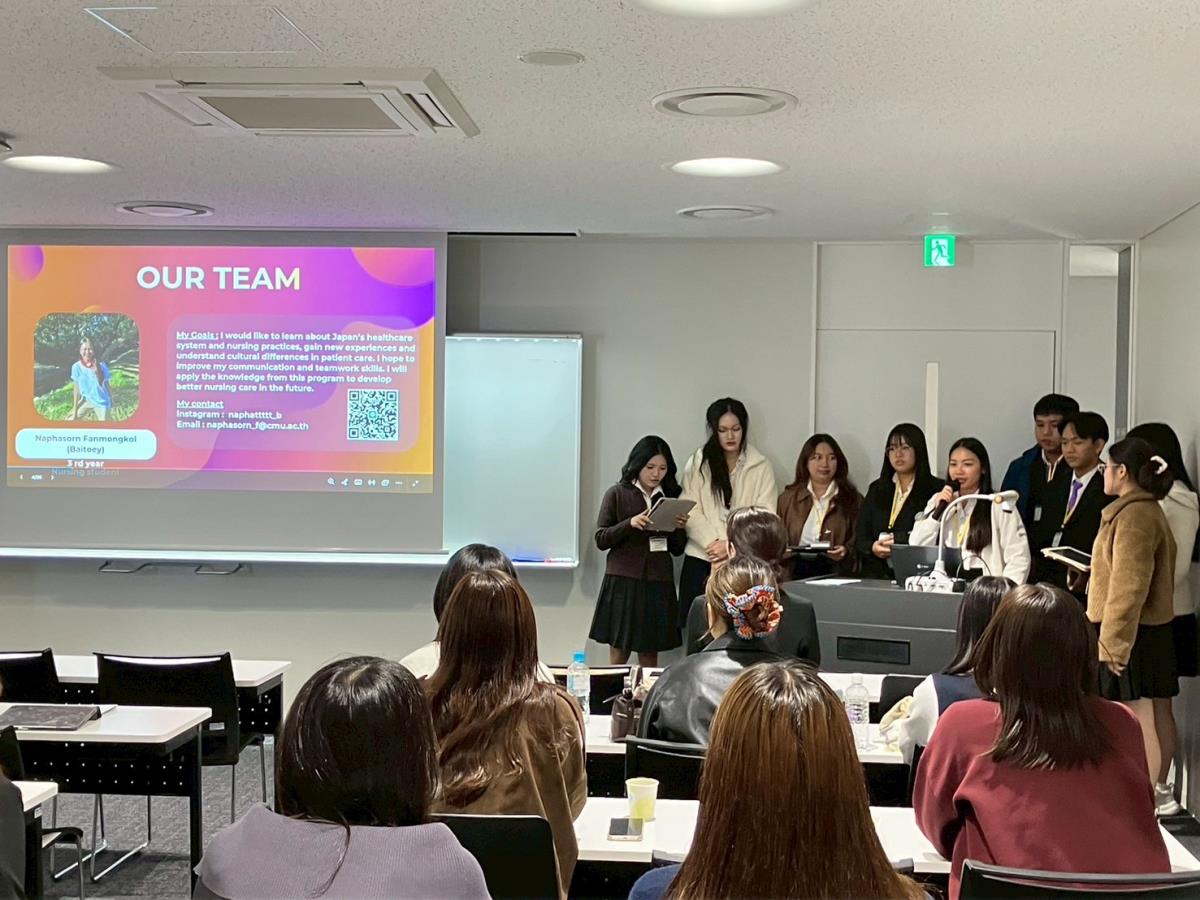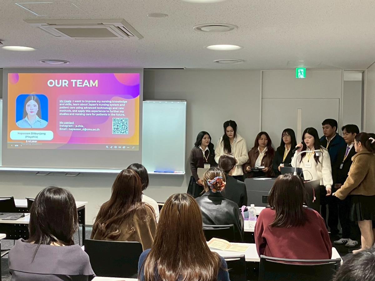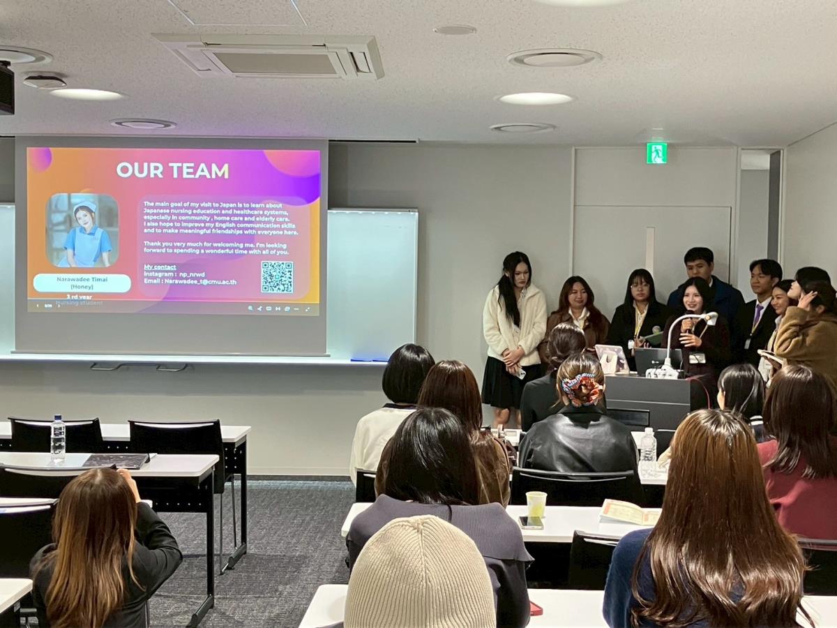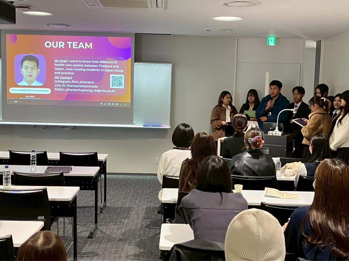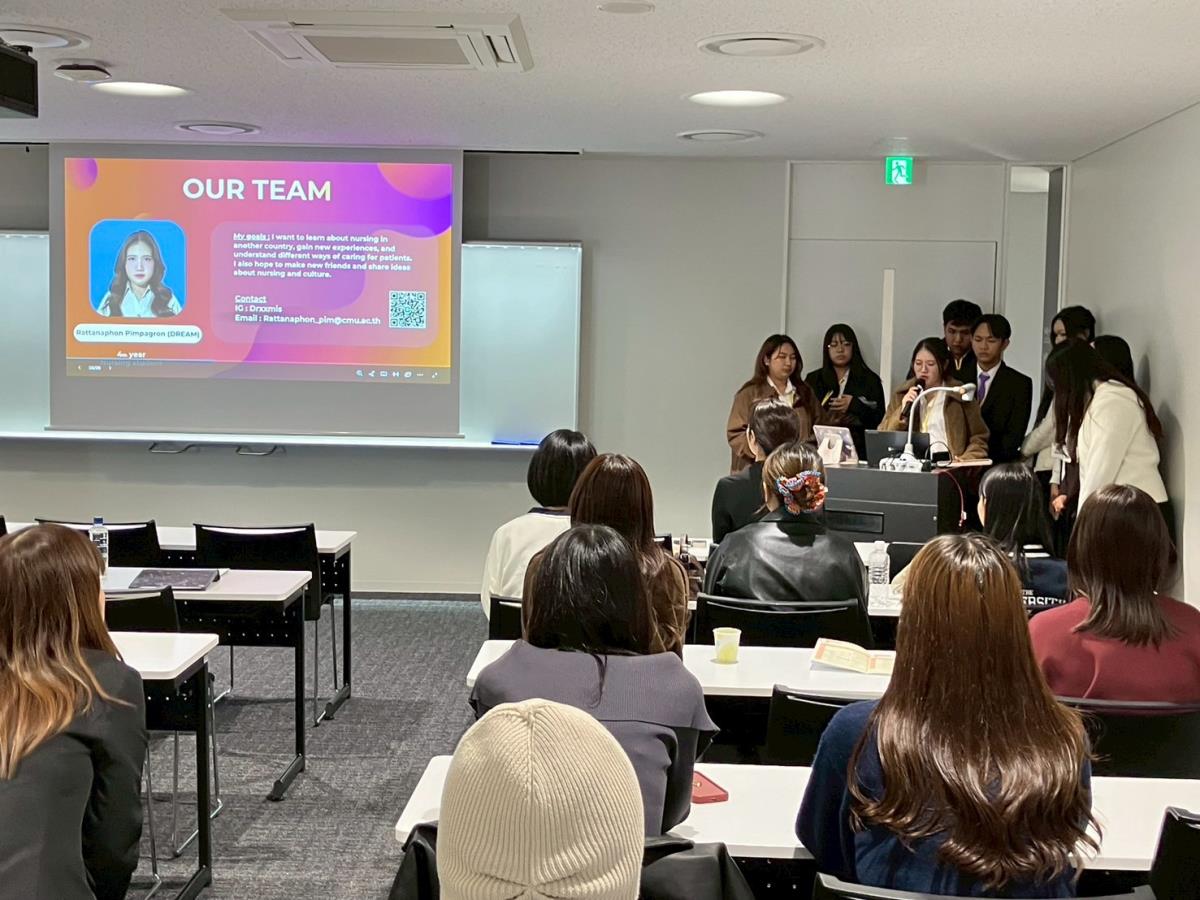 The CMU delegates received a warm welcome from both universities and engaged in a variety of academic and cultural activities, including university orientations, learning about Japan’s health care system, nursing skill practice in classroom settings, visits to health care facilities and cultural landmarks, as well as cultural exchange sessions. CMU nursing students also shared Thai cultural identity and exchanged experiences about university life with Japanese students, fostering meaningful friendships and cross-cultural understanding.