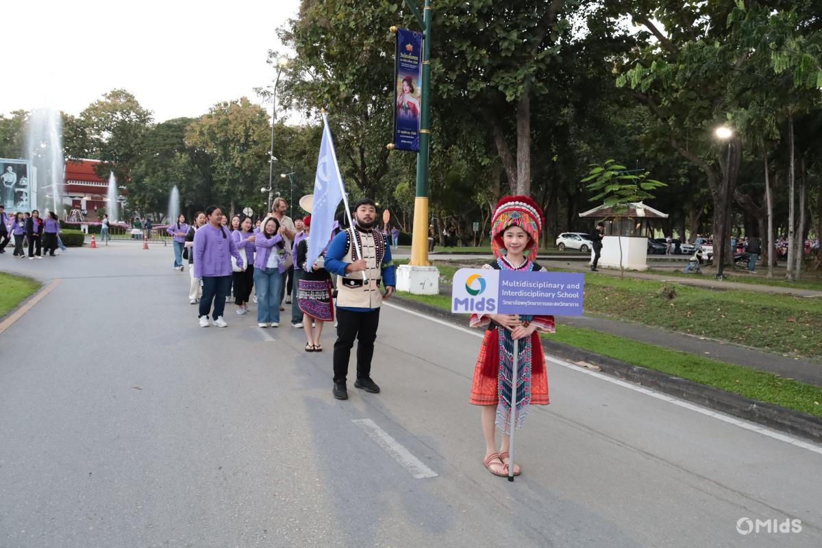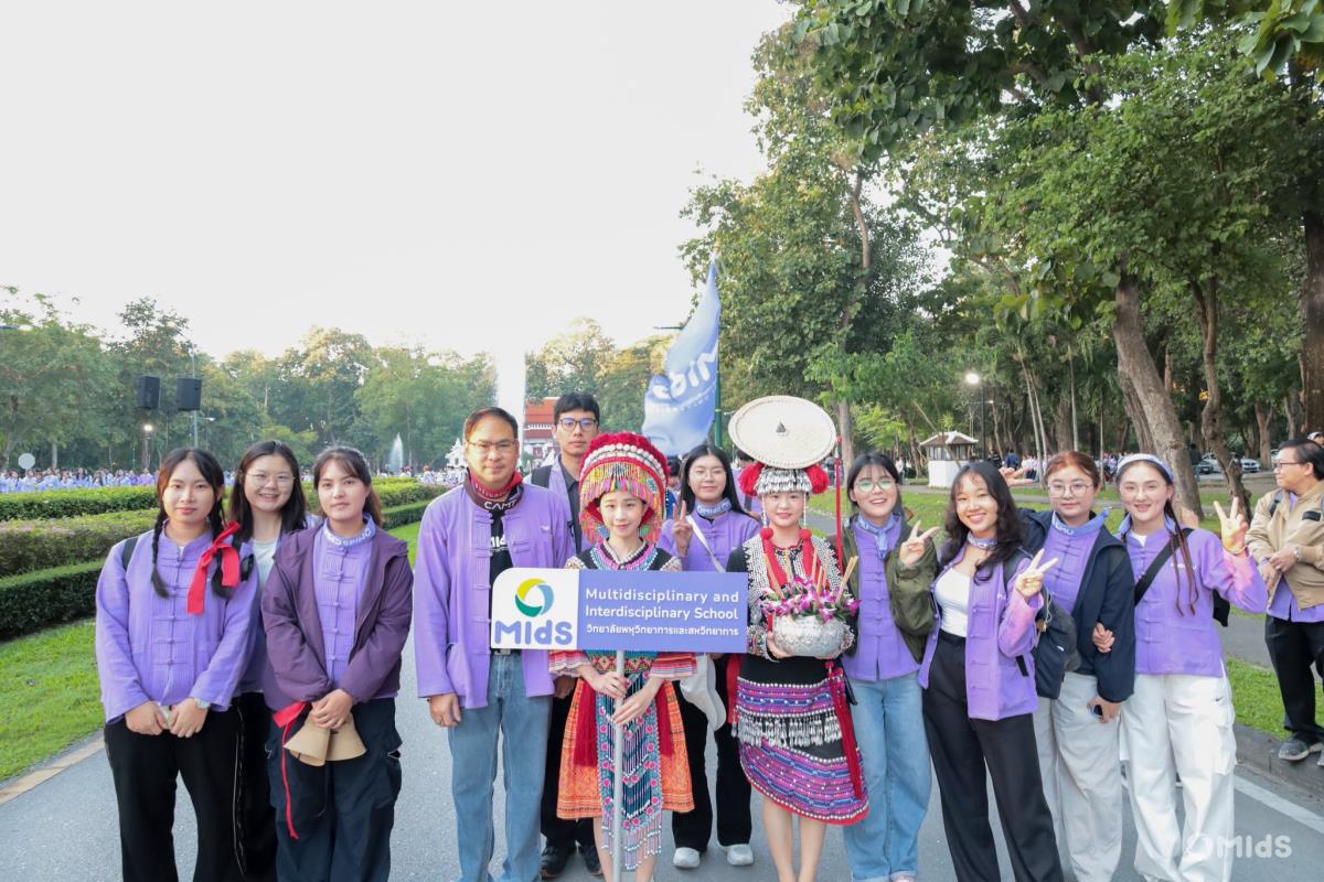 The MIdS contingent was led by Associate Professor Dr. Ekkarat Boonchieng, Associate Dean of MIdS, together with administrators, faculty members, staff, and graduate students of MIdS. The procession began at Chiang Mai University and continued up to Wat Phra That Doi Suthep Ratchaworawihan, dedicated as a royal merit-making offering to Her Majesty Queen Sirikit The Queen Mother.