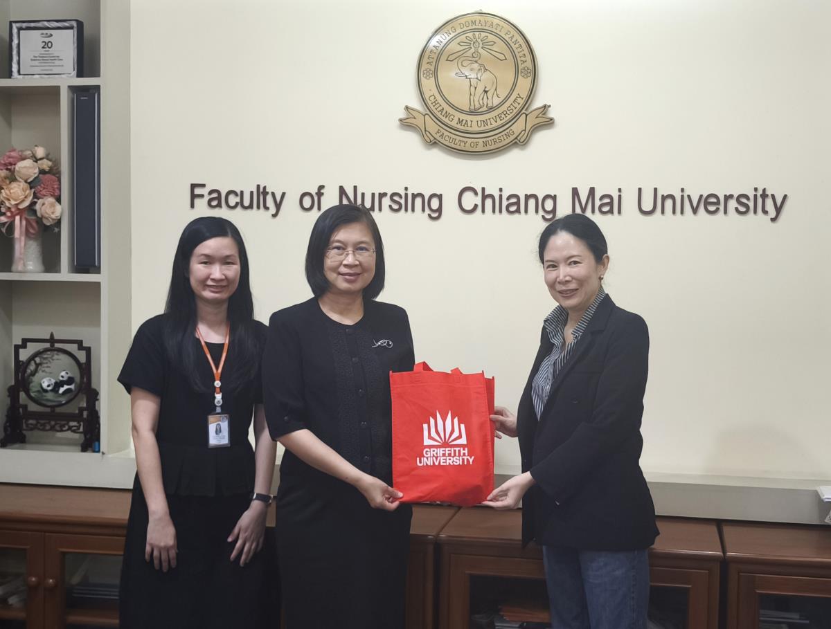 On Monday, November 17, 2025, Associate Professor Dr. Phanida Juntasopeepun, Associate Dean of the Faculty of Nursing, Chiang Mai University, warmly welcomed Ms. Yada Chongmeekuamsuk, Country Manager for Thailand, Laos, Cambodia and Myanmar from Griffith University, Australia, to explore potential academic collaboration opportunities between the two institutions during her visit to the Faculty of Nursing. The meeting took place at the Dean’s Office Meeting Room, 2nd Floor, Building 4.