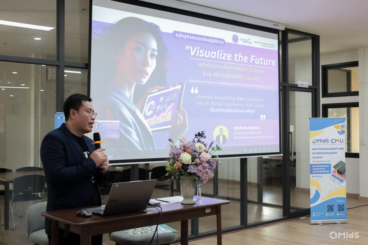 On November 13, 2025, Multidisciplinary and Interdisciplinary School (MIdS), Chiang Mai University, in collaboration with the Career for the Future Academy (CFA) under the National Science and Technology Development Agency (NSTDA), organized a hands-on workshop titled “Visualize the Future: Transforming Communication with Infographics & AI.”