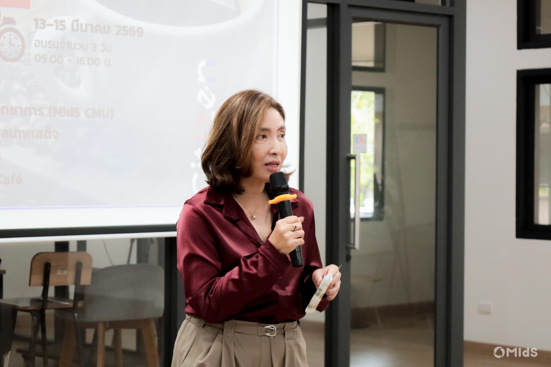 Throughout the three-day program, the course was honored by the participation of Yaowalak Wongprapharat, Director of the Cluster Research Framework for the Special Economic Corridor at the Thailand Science Research and Innovation – Area-Based Development Program Management Unit (PMU A), who served as a guest speaker and helped facilitate the training sessions. Her contribution greatly enriched the learning experience and encouraged meaningful knowledge exchange among participants.