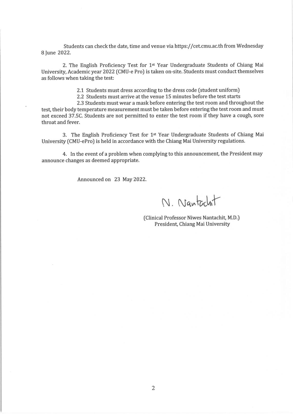 Chiang Mai University Announcement on English Proficiency Test for 1st Year Undergraduate Students, Academic Year 2022 Chiang Mai University (CMU-ePro)