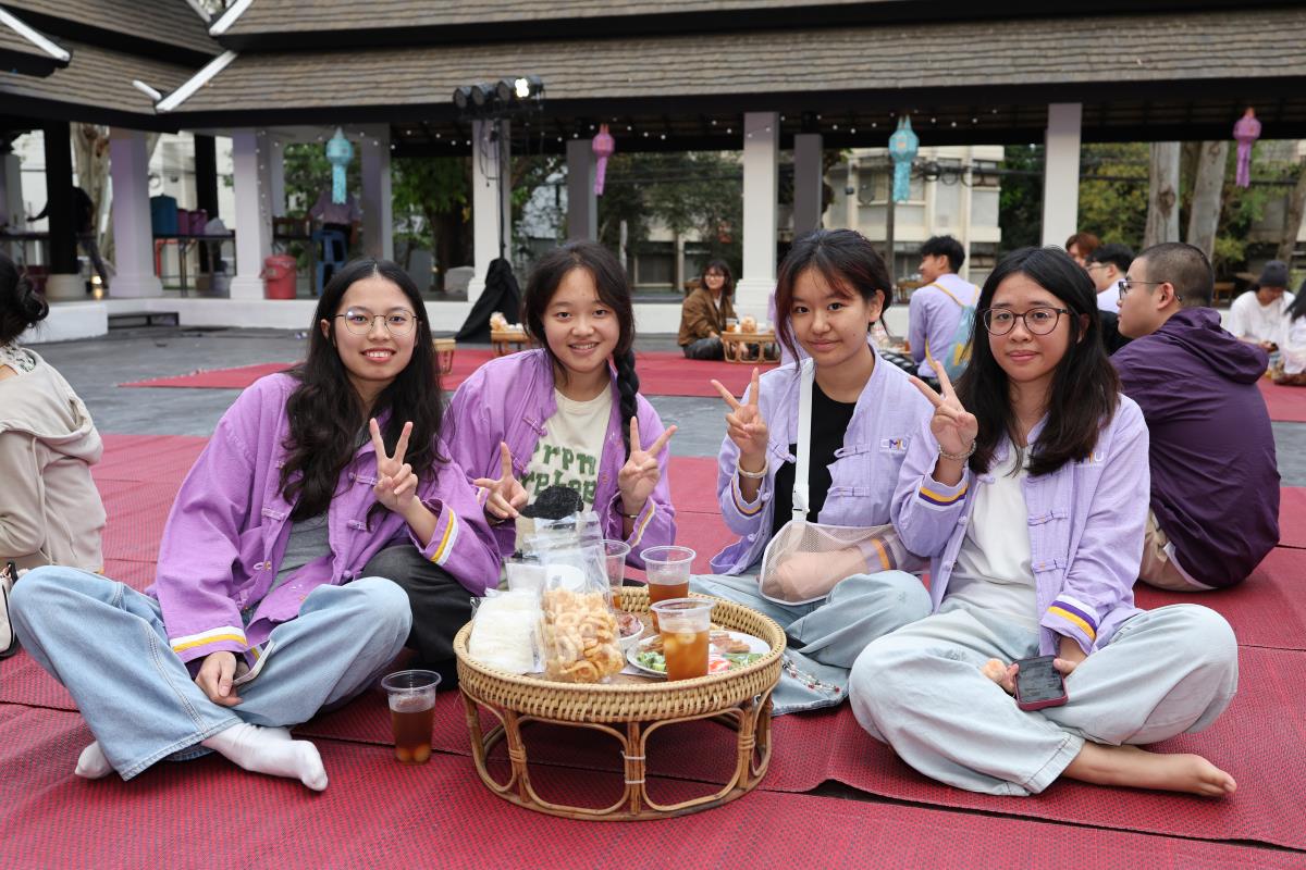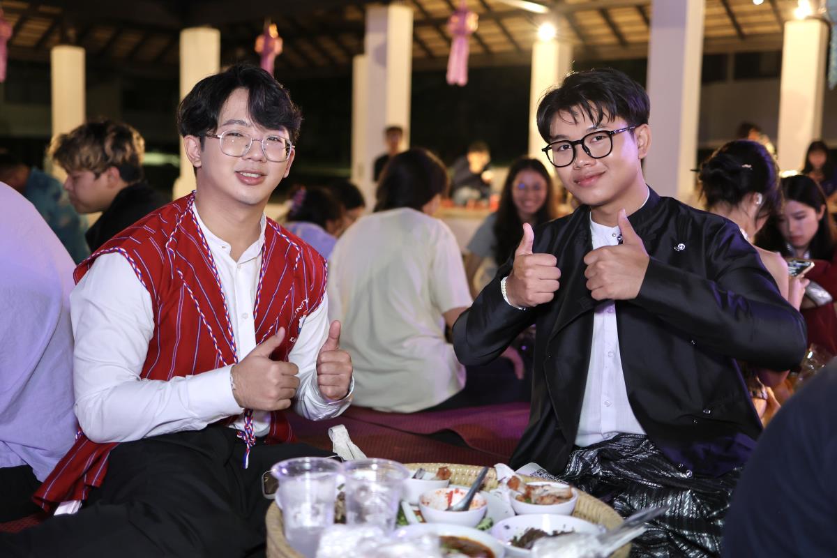 The program featured a traditional wrist-tying ceremony for new students, symbolizing a warm welcome and best wishes, along with a mini concert performed by students. Participants also enjoyed a traditional Khantoke dinner while watching cultural performances presented by students, creating a lively, joyful, and memorable atmosphere.