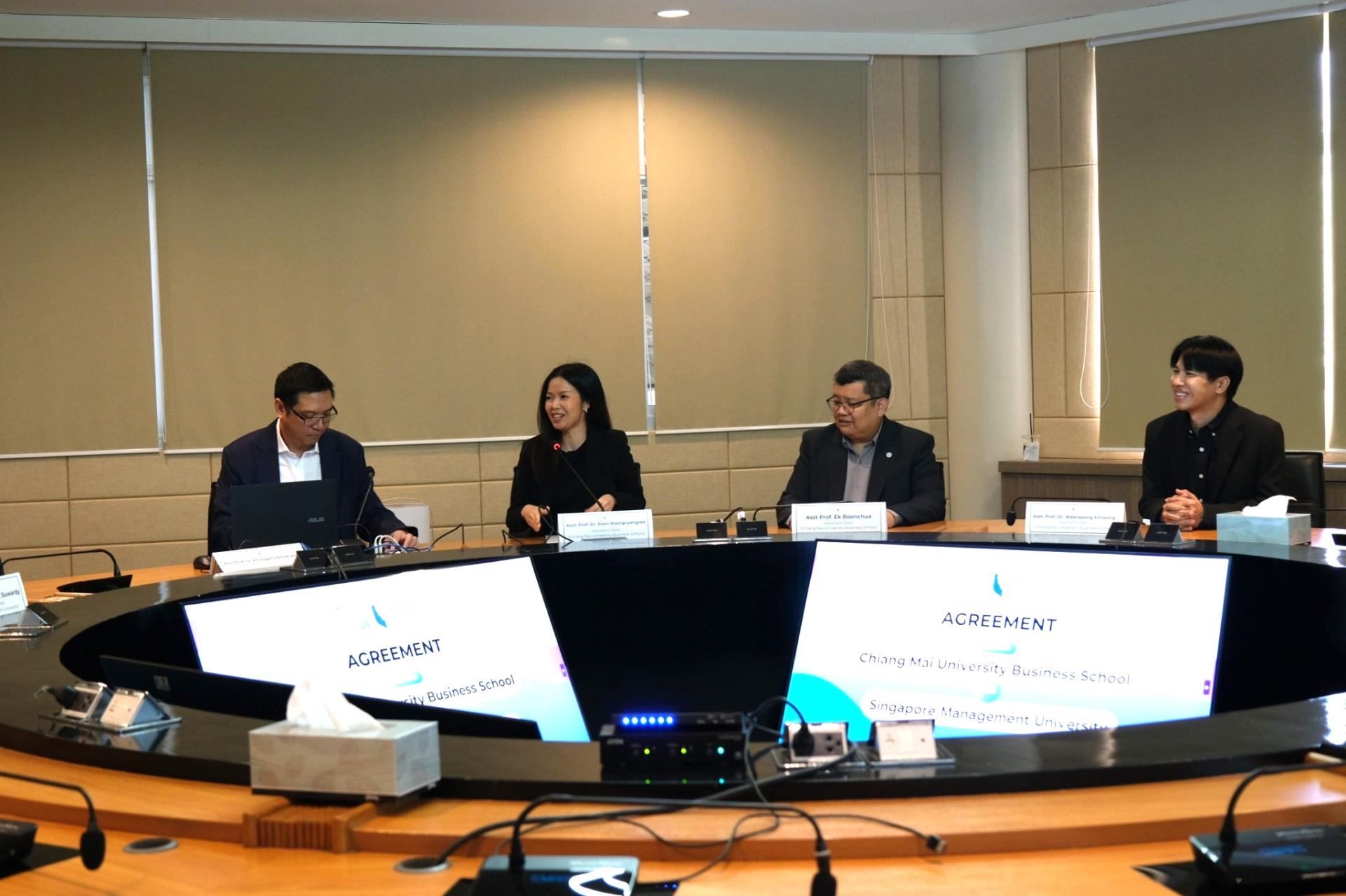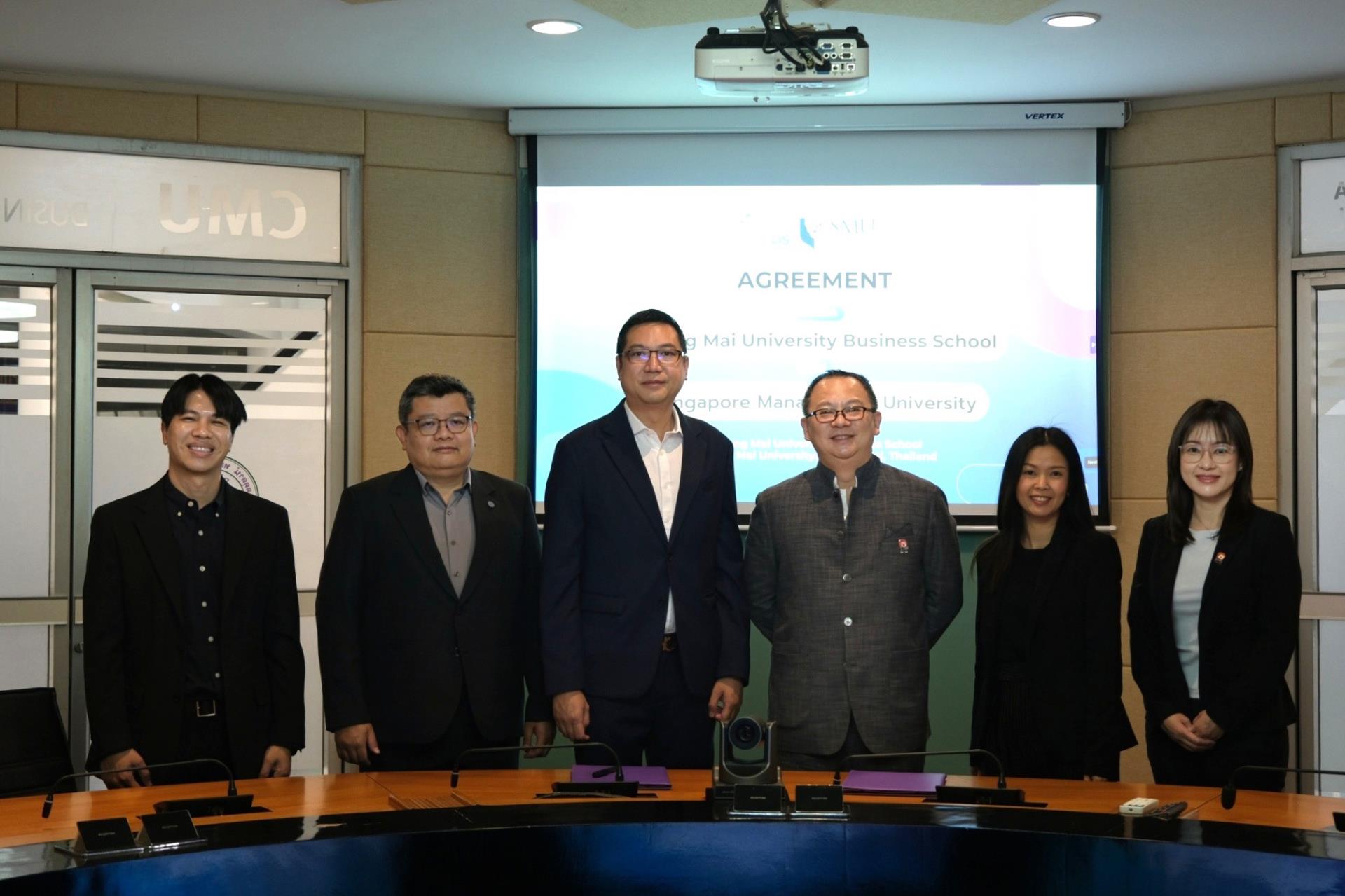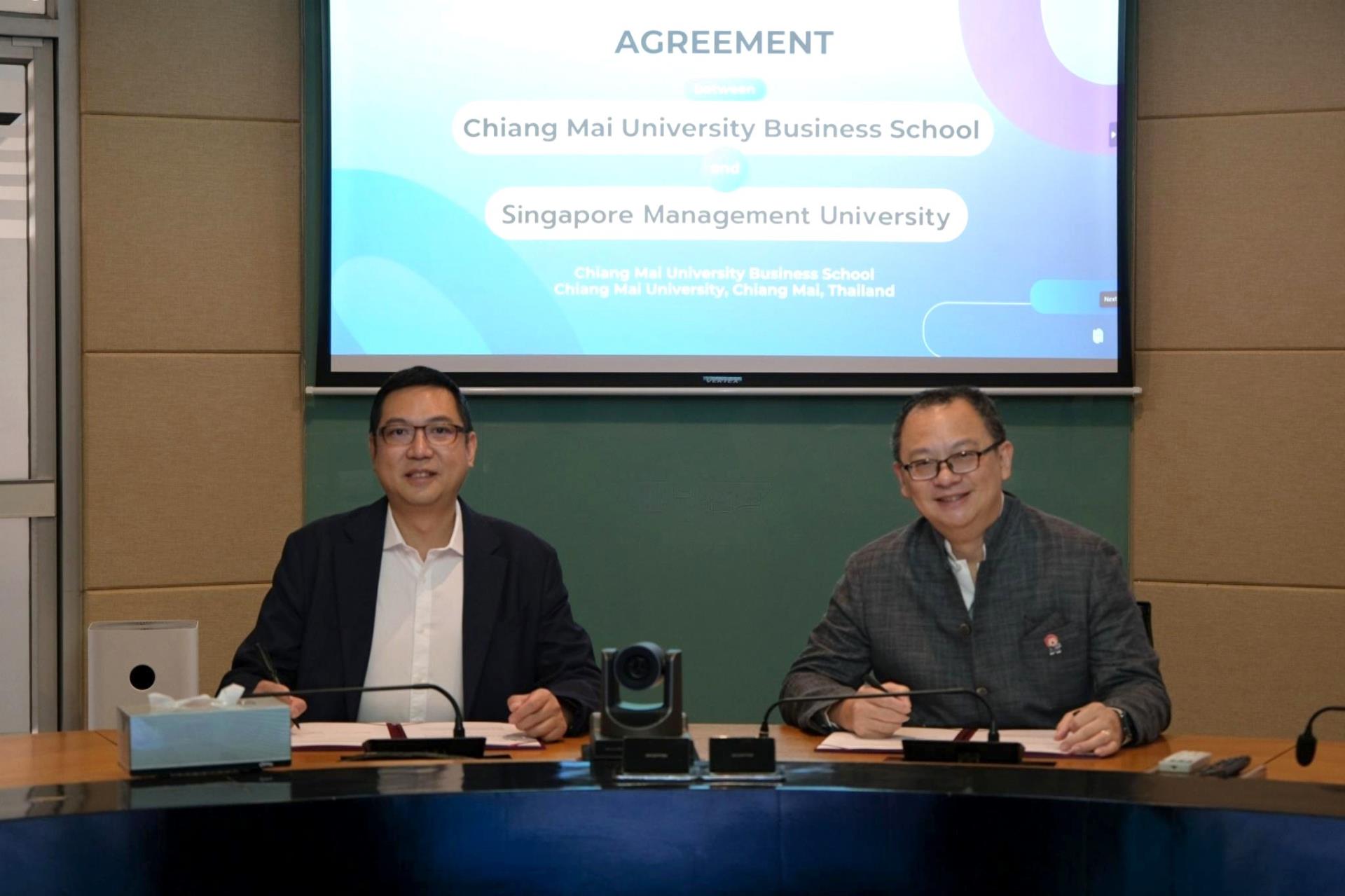 On 16 February 2026, Chiang Mai University Business School officially held a memorandum of understanding (MOU) signing ceremony with Singapore Management University to establish integrated Bachelor–Master academic pathways and strengthen academic collaboration between the two institutions. The agreement was signed by Asst Prof. Dr. Khongphu Nimanandh, Dean of Chiang Mai University Business School, and Assoc. Prof. Themin Suwardy, Associate Provost (Post-Graduate Programme Education), Singapore Management University in the presence of executives from both institutions as witnesses at Hexagon Meeting Room, Chiang Mai University Business School, Chiang Mai University.
