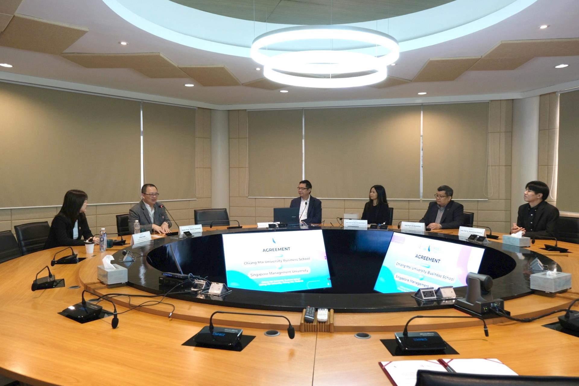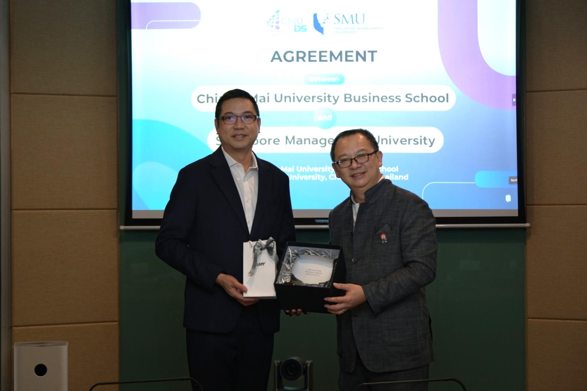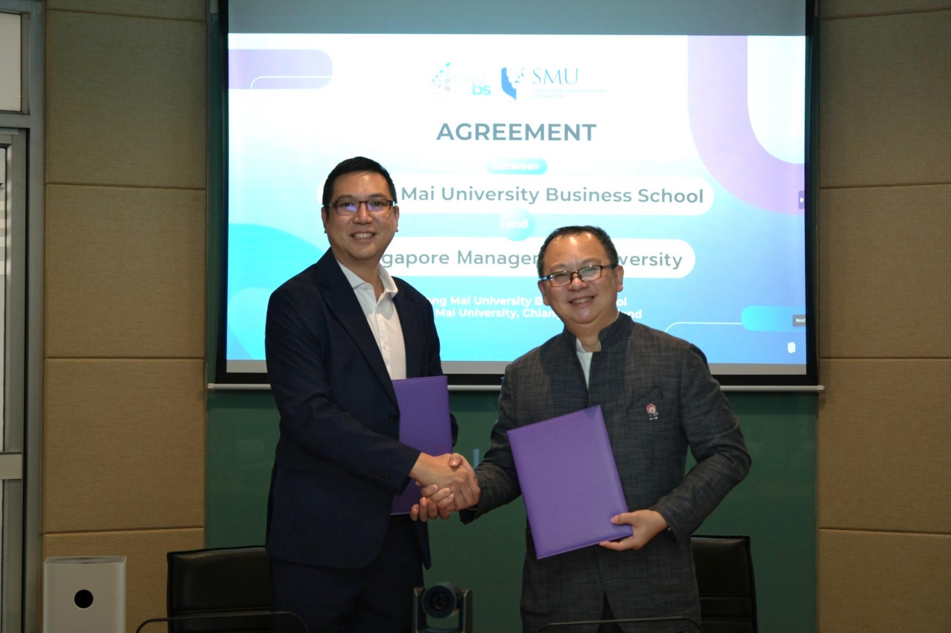 On 16 February 2026, Chiang Mai University Business School officially held a memorandum of understanding (MOU) signing ceremony with Singapore Management University to establish integrated Bachelor–Master academic pathways and strengthen academic collaboration between the two institutions. The agreement was signed by Asst Prof. Dr. Khongphu Nimanandh, Dean of Chiang Mai University Business School, and Assoc. Prof. Themin Suwardy, Associate Provost (Post-Graduate Programme Education), Singapore Management University in the presence of executives from both institutions as witnesses at Hexagon Meeting Room, Chiang Mai University Business School, Chiang Mai University.