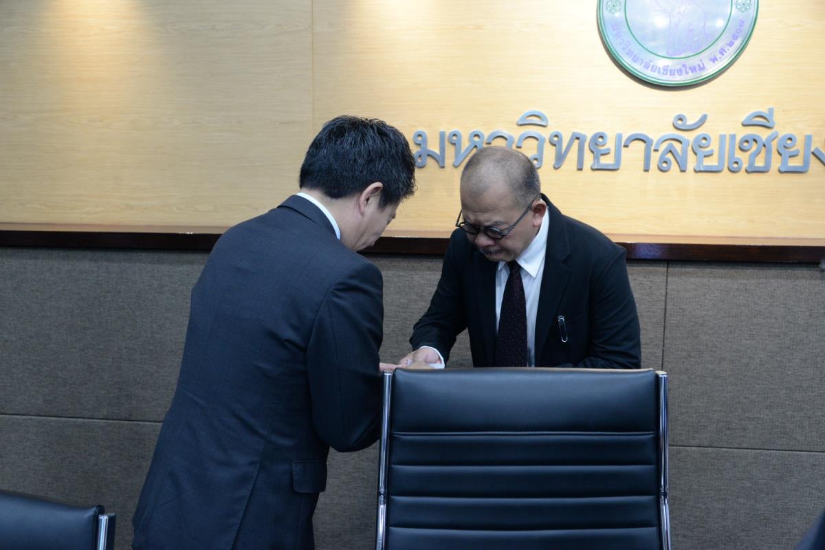 Professor Dr. Toyoda Inchihiko, Vice President of Saga University and Director of Research & Community Cooperation Affairs, Mr. Torikai Hirotaka, Vice Mayor of Kashima City, Mr. Nakamura Yuichiro, Executive Director, NPO Hizenhama-shuku Mizu to Machinami no Kai, and delegates, were warmly welcomed by Professor of Practice Ekkachai Mahaek, Ph.D., Vice President of Chiang Mai University, to attend the Letter of Intent signing ceremony and discuss on future cooperation. Friday 16th August 2024.