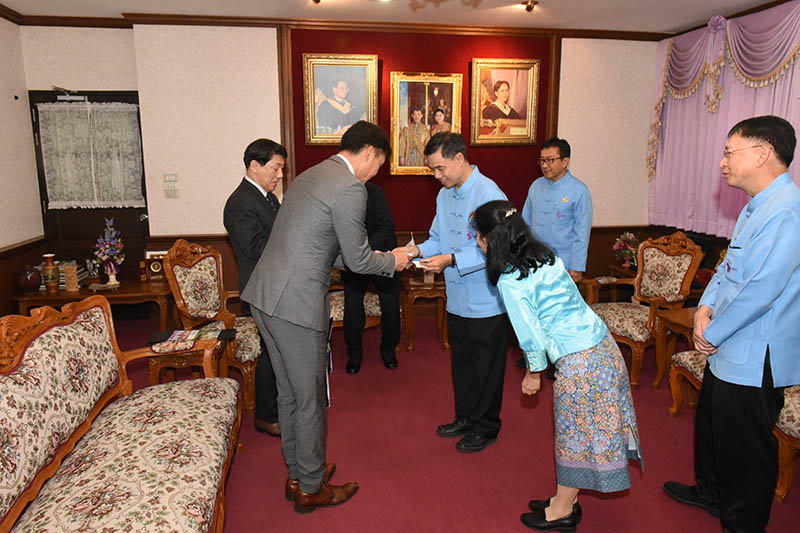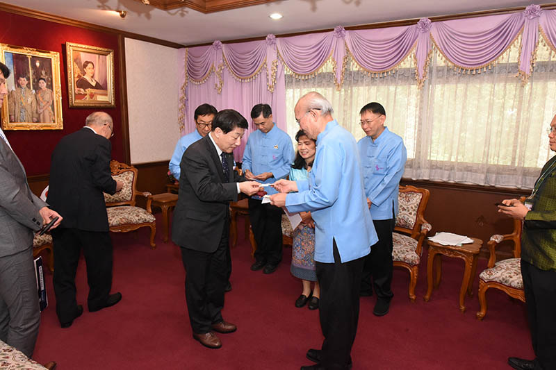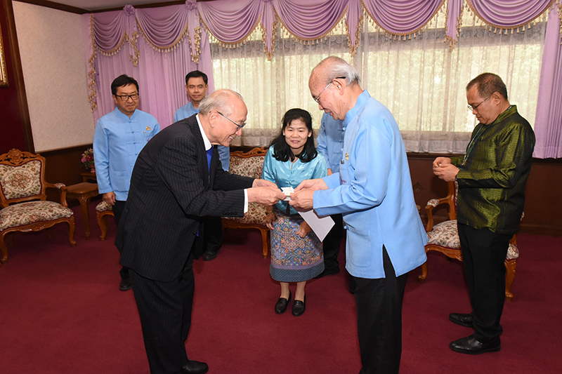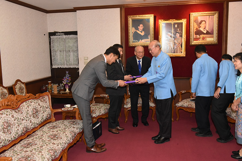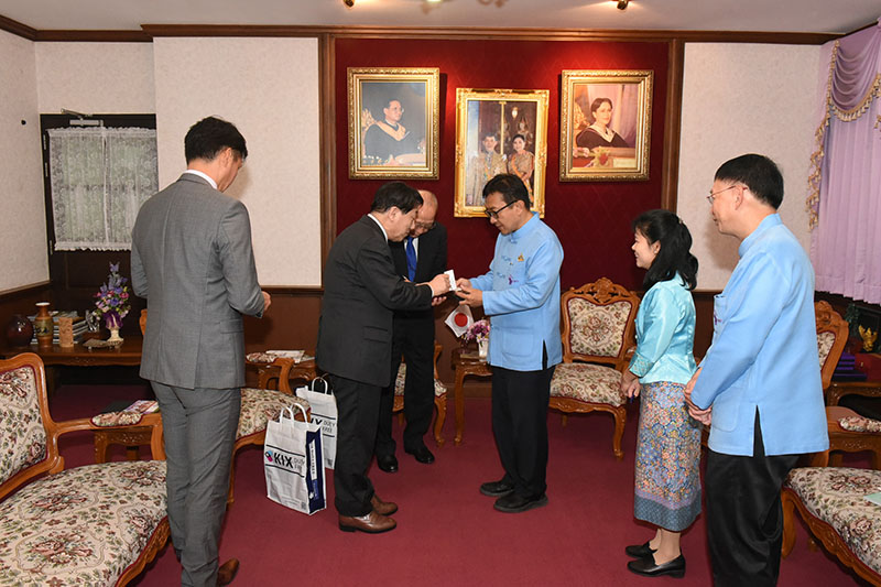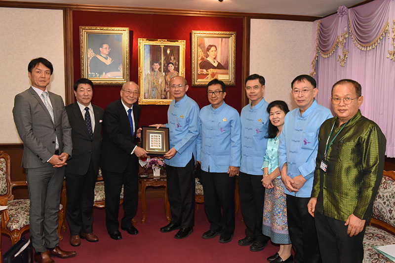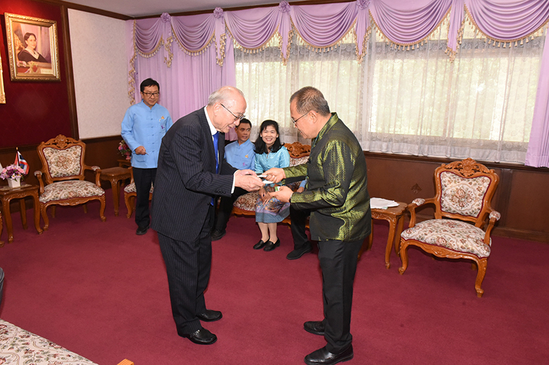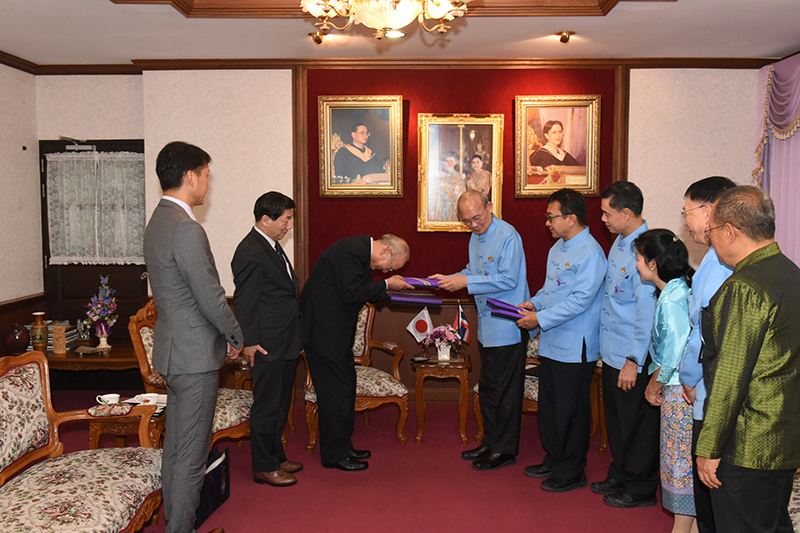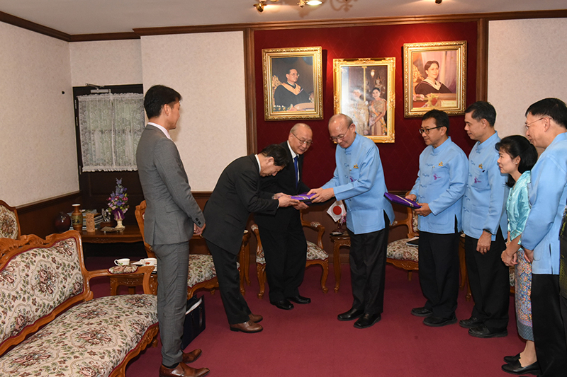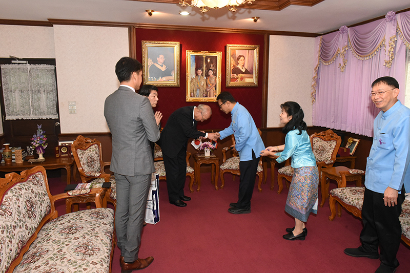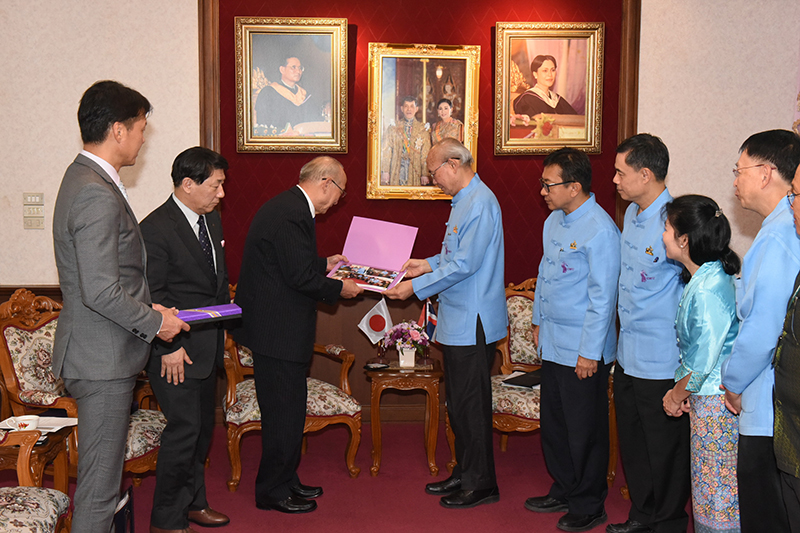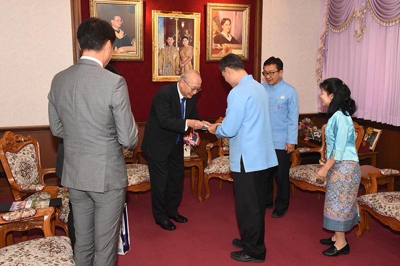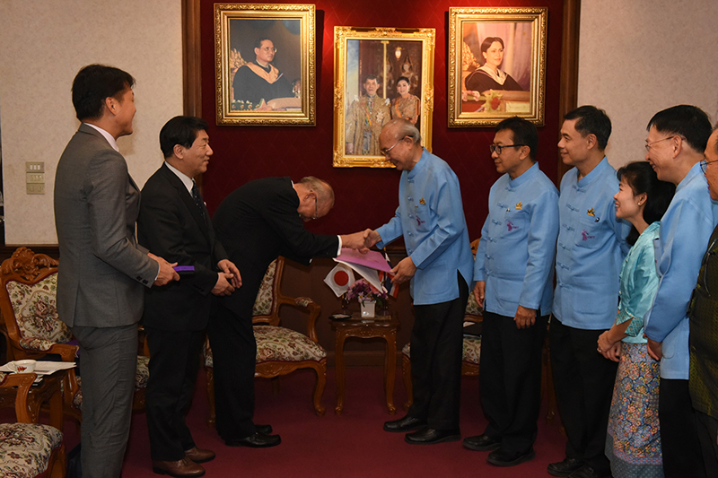 Mr. Toshio Tetsumura, Chairman, Nara-Higashi Hospital, Japan and the delegation welcomed by Clinical Professor Niwes Nantachit, M.D., President of Chiang Mai University on the occasion of their visit to Chiang Mai University. September 27th, 2019.