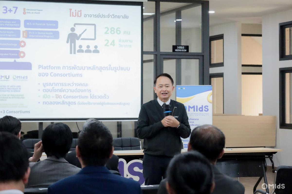 The objective of the ceremony was to establish a clear framework for the management of Master of Science and Doctor of Philosophy programs under MIdS CMU, in alignment with the policies and strategic directions of Chiang Mai University. The collaboration emphasizes knowledge integration, inter-faculty cooperation, and shared resource utilization to enhance program quality and ensure responsiveness to current labor market demands and societal needs.