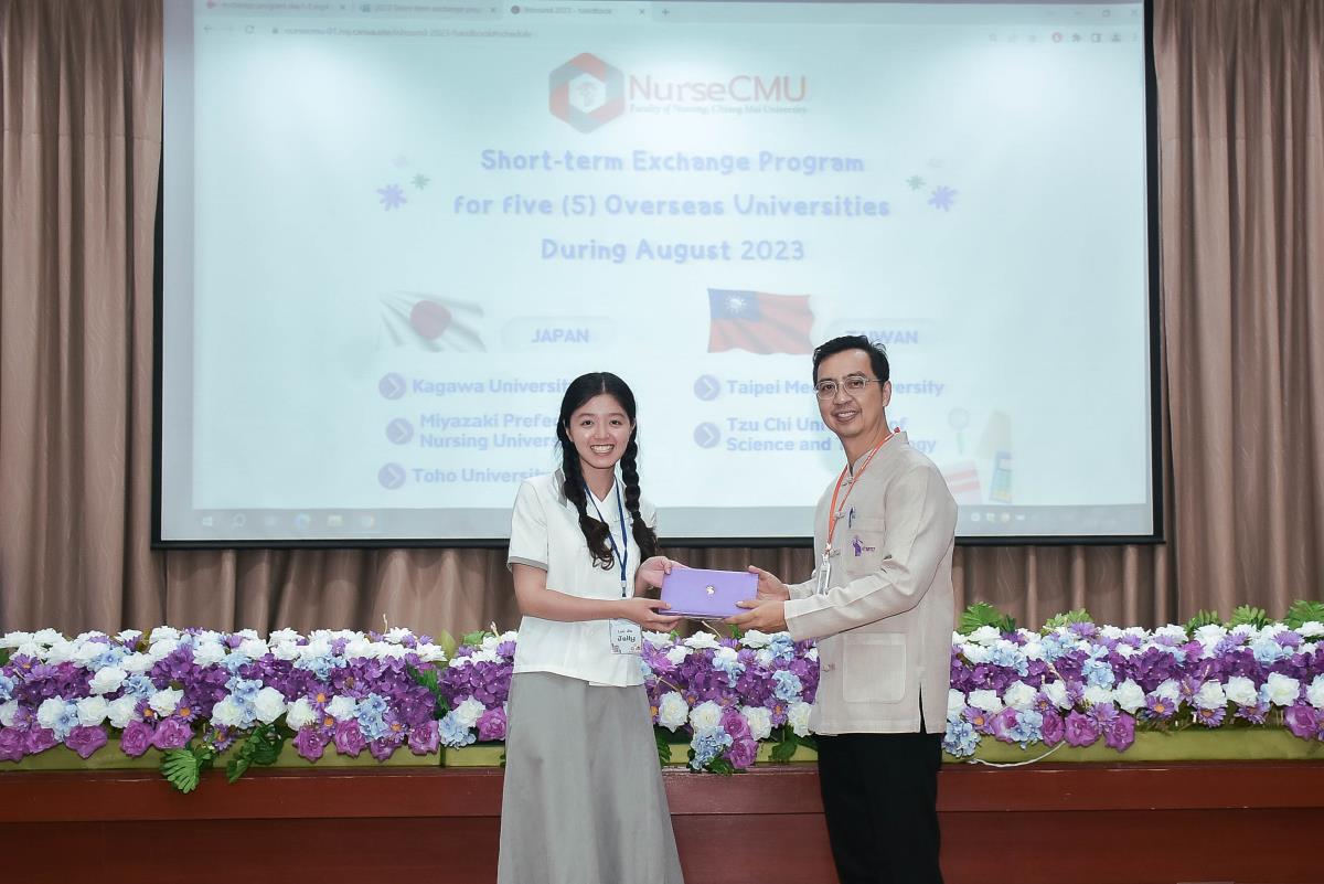 On August 25, 2023, the Faculty of Nursing at Chiang Mai University held a closing ceremony. They awarded certificates to participants of an exchange program for nursing students from five leading universities in Japan and Taiwan. Assistant Professor Dr. Thanee Kaewthummanukul, the Dean, presided over the ceremony. The universities included Kagawa University, Miyazaki Prefectural Nursing University, Toho University, Taipei Medical University, and Tzu Chi University of Science and Technology.