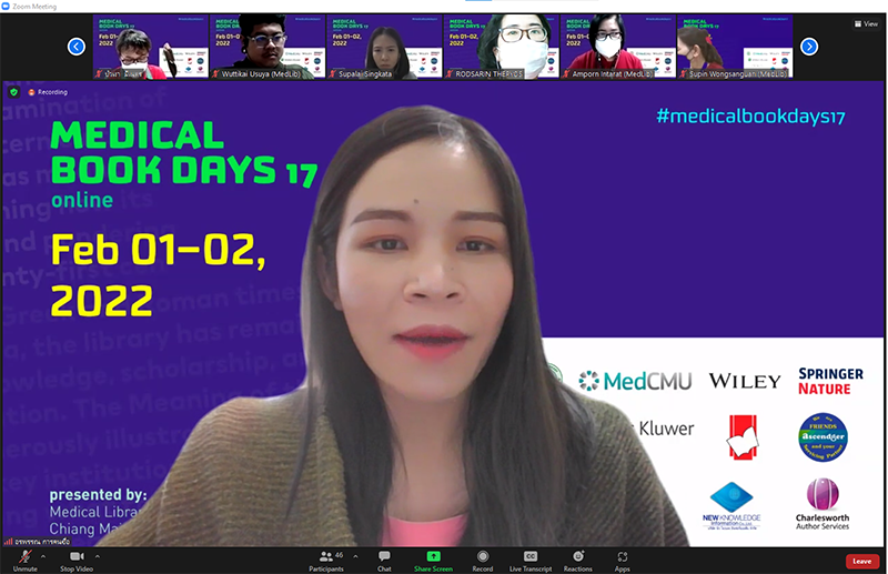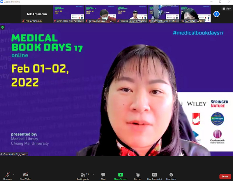 Mrs. Oraphan Karnkonsue, Deputy Director of CMU Library Representative of the Director of CMU Library, Attended the opening ceremony of the 17th Medical Book Days Academic Conference. Titled Publishing Scientific Papers in the 21st Century and gave a speech on the topic "The Importance of Organizing Academic Conferences of University Libraries." By Professor (senior expert level) Bannakij Lojanapiwat, M.D., Dean of the Faculty of Medicine Chiang Mai University opening remarks, Associate Professor Dr.Wariya Sukukrakarn, M.D., Assistant Dean of the Faculty of Medicine, delivered a report for academic services. Promote the production of research results by using medical information resources for personnel in health sciences. And to provide general knowledge about social skills (Soft Skills) to communities inside and outside Chiang Mai University. Through the online program Zoom on February 1, 2022.