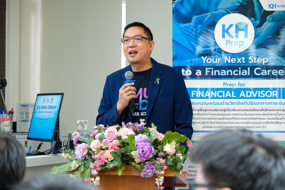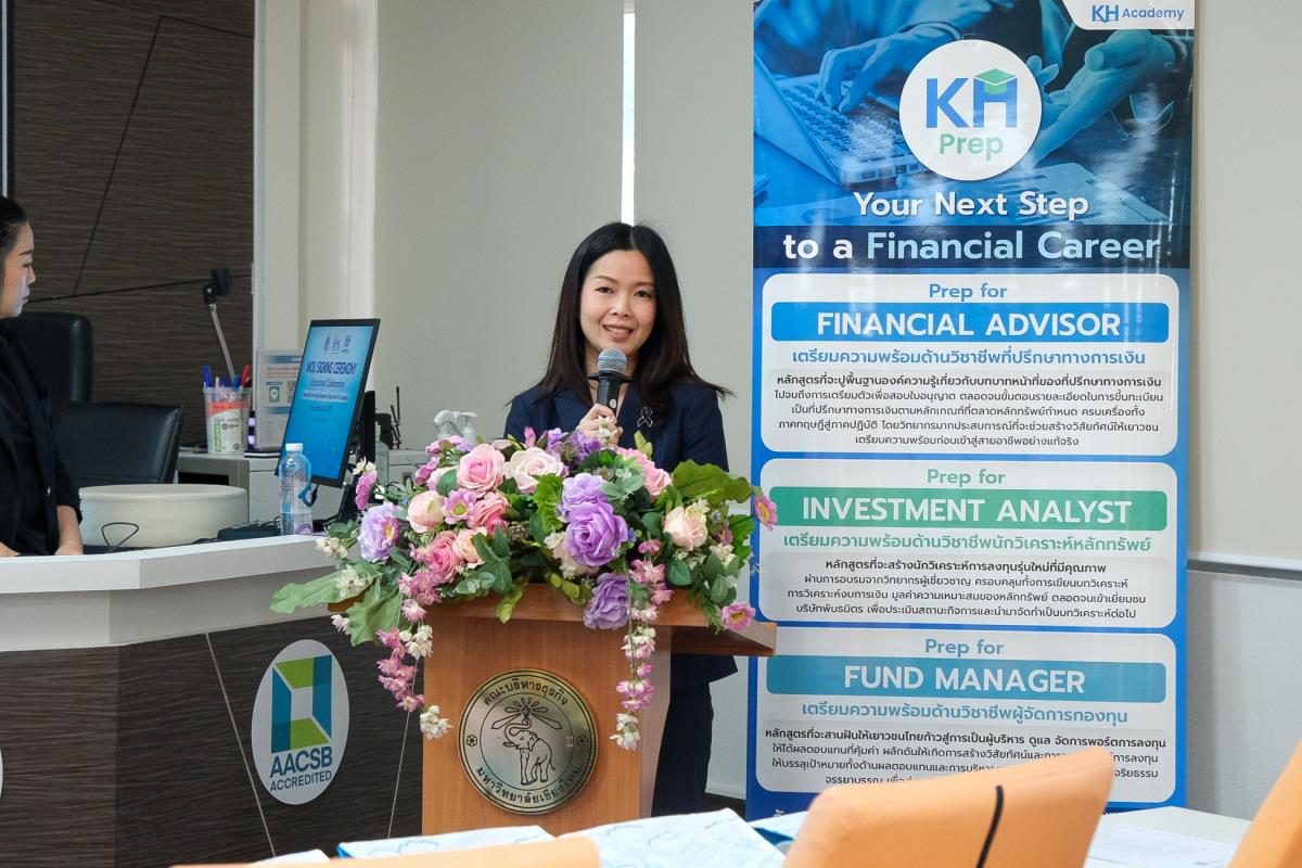 สำหรับ KH Academy เป็นสถาบันการเรียนรู้ด้านวิชาชีพการเงินและการลงทุนที่มุ่งพัฒนานิสิตนักศึกษาจากหลายมหาวิทยาลัยทั่วประเทศ ผ่านหลักสูตรเชิงลึก เช่น โปรแกรมเตรียมความพร้อมด้านวิชาชีพที่ปรึกษาการเงิน นักวิเคราะห์หลักทรัพย์ และผู้จัดการกองทุน รวมถึงโครงการพัฒนาผู้นำรุ่นใหม่ เพื่อสร้างบุคลากรที่มีศักยภาพพร้อมก้าวสู่โลกวิชาชีพในอนาคต
