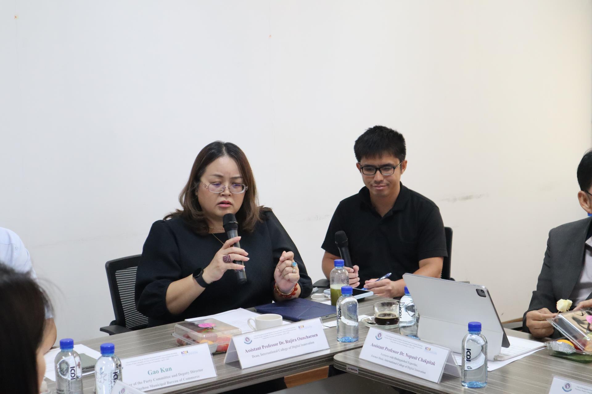 ในการนี้ ผู้ช่วยศาสตราจารย์ ดร.รุจิรา อุ่นเจริญ คณบดีวิทยาลัยนานาชาตินวัตกรรมดิจิทัล ให้เกียรติกล่าวต้อนรับและรับรองคณะผู้แทน โดยได้เน้นย้ำถึงบทบาทของวิทยาลัยฯ ในการเป็นศูนย์กลางด้านนวัตกรรมดิจิทัลและการเชื่อมโยงความร่วมมือระหว่างภาคการศึกษาและภาคอุตสาหกรรมในระดับนานาชาติ