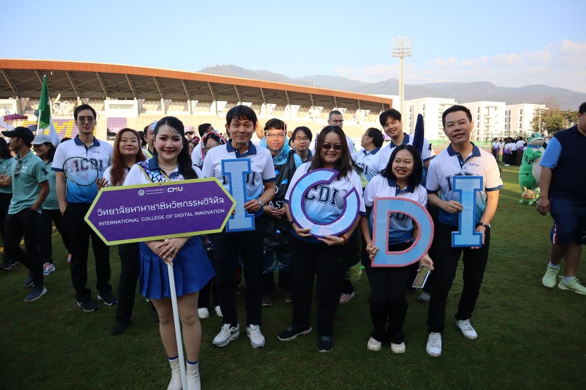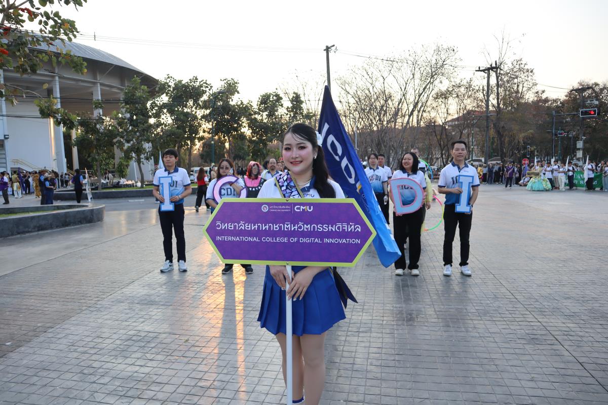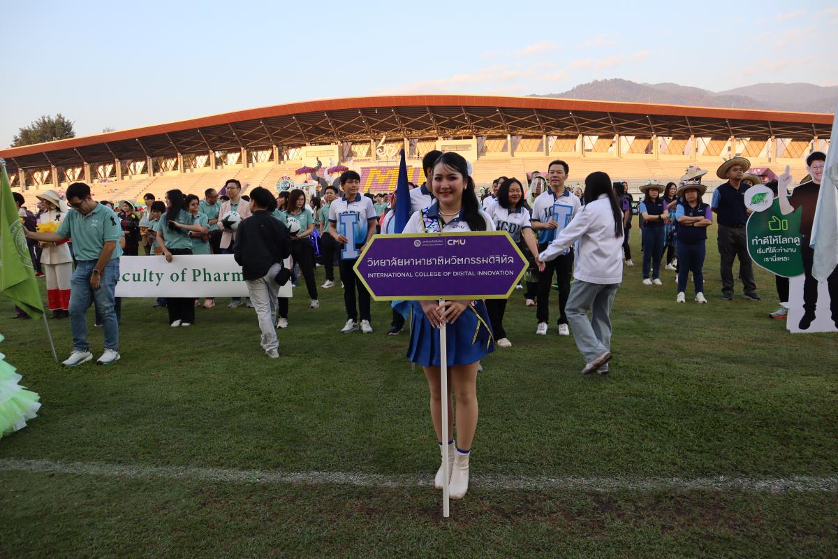 วิทยาลัยนานาชาตินวัตกรรมดิจิทัล มหาวิทยาลัยเชียงใหม่ นำโดย ผู้ช่วยศาสตราจารย์ ดร.รุจิรา อุ่นเจริญ คณบดีวิทยาลัยนานาชาตินวัตกรรมดิจิทัล พร้อมด้วยทีมผู้บริหาร คณาจารย์ และบุคลากรสายสนับสนุน เข้าร่วมเดินขบวนพาเหรดในกิจกรรม การแข่งขันกีฬาบุคลากรมหาวิทยาลัยเชียงใหม่ ประจำปี 2569 ซึ่งจัดขึ้นภายใต้ภายใต้แนวคิด “SPORTS FOR SUSTAINABILITY” การส่งเสริมสุขภาพควบคู่การรักษาสิ่งแวดล้อม และการเสริมสร้างความสามัคคีในองค์กร ณ สนามกีฬากลาง มหาวิทยาลัยเชียงใหม่ ในวันเสาร์ที่ 7 กุมภาพันธ์ 2569 เวลา 06.30 – 08.30 น.