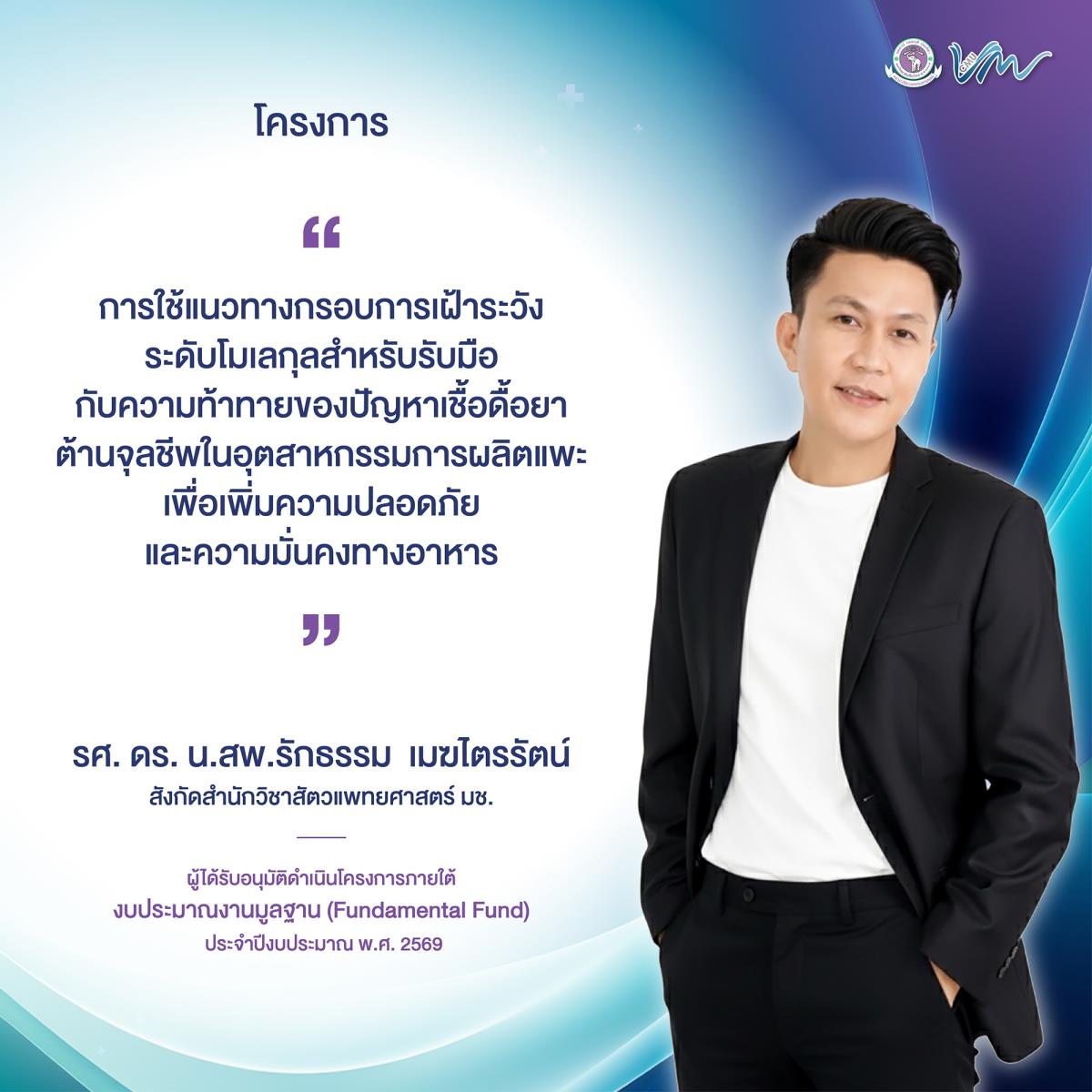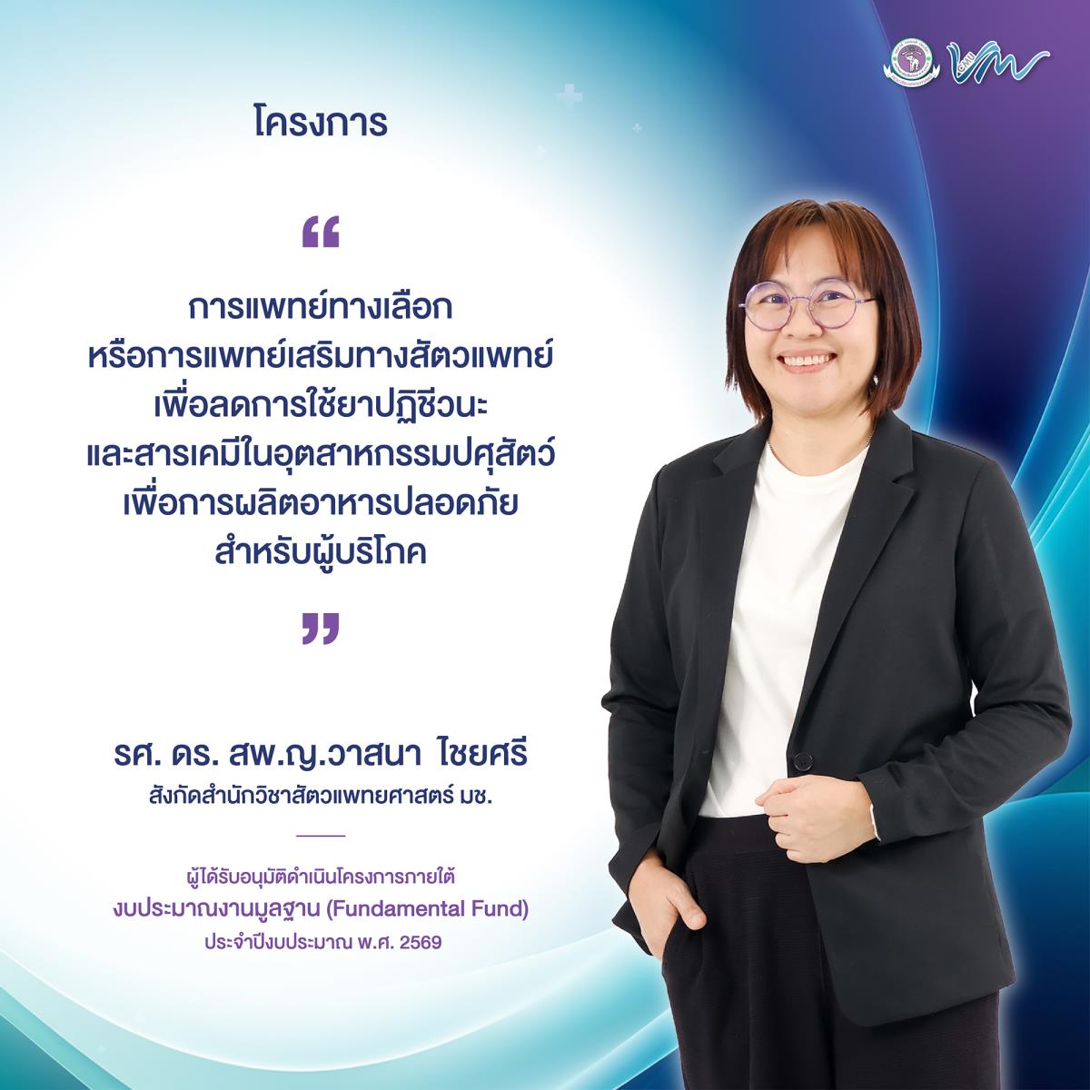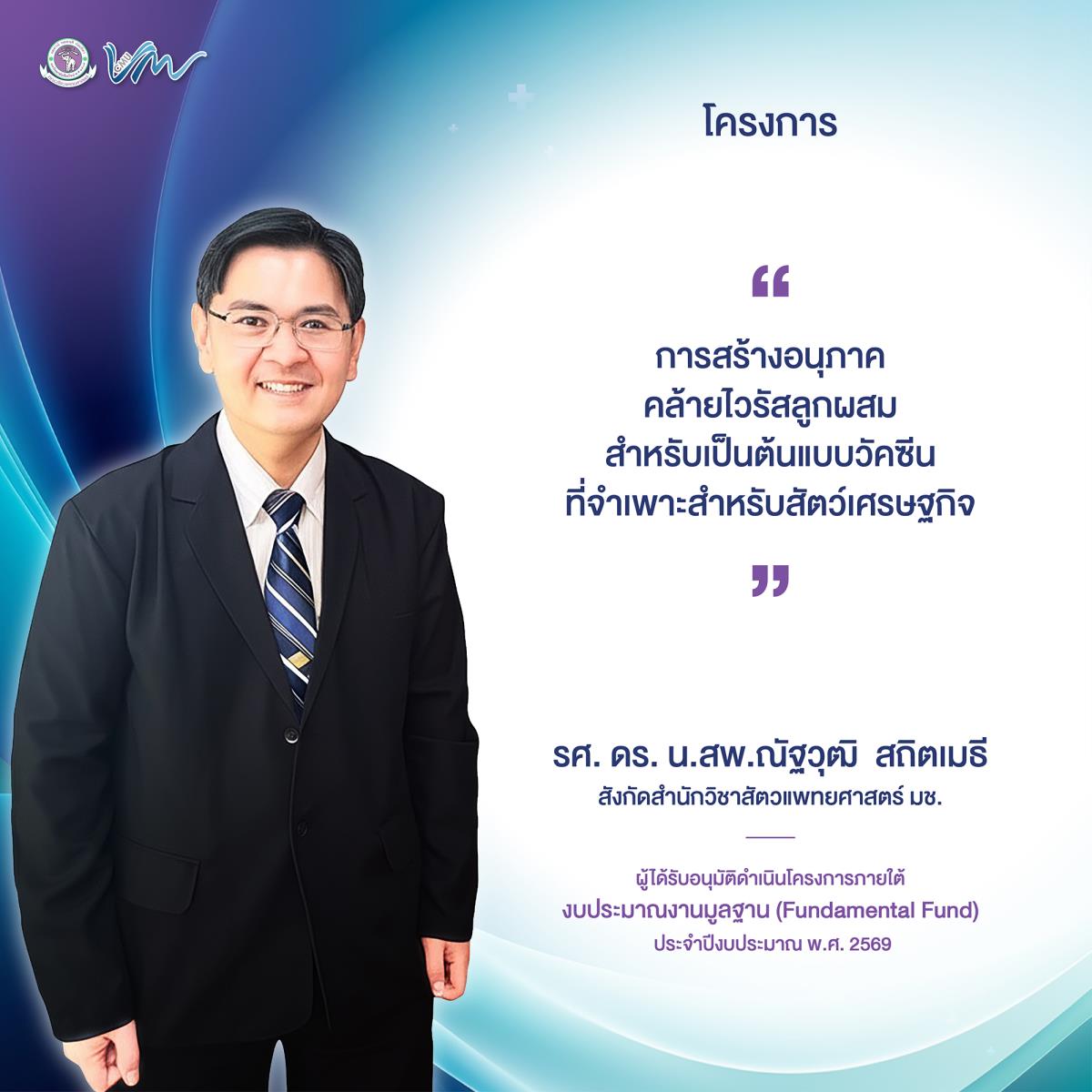 ขอแสดงความยินดีกับคณาจารย์สังกัดสำนักวิชาสัตวแพทยศาสตร์ ผู้รับอนุมัติงบประมาณเพื่อสนับสนุนงานมูลฐาน (Fundamental Fund) ประจำปีงบประมาณ พ.ศ. 2569