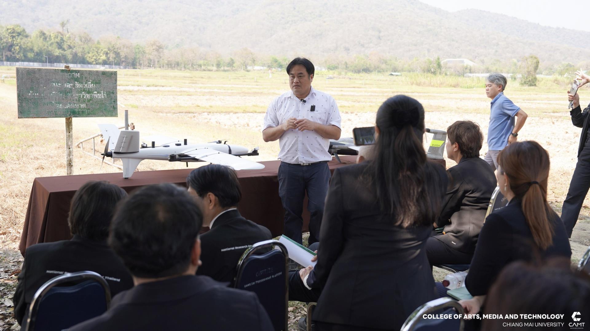 นวัตกรรมการจัดการไฟป่าด้วยโดรน (UAV) ครั้งนี้ เป็นหนึ่งในภารกิจป้องกันและแก้ไขปัญหาหมอกควัน PM2.5 ซึ่งดำเนินงานโดยคณะทำงานด้านวิชาการเพื่อสนับสนุนการแก้ไขปัญหาหมอกควันภาคเหนือ มหาวิทยาลัยเชียงใหม่