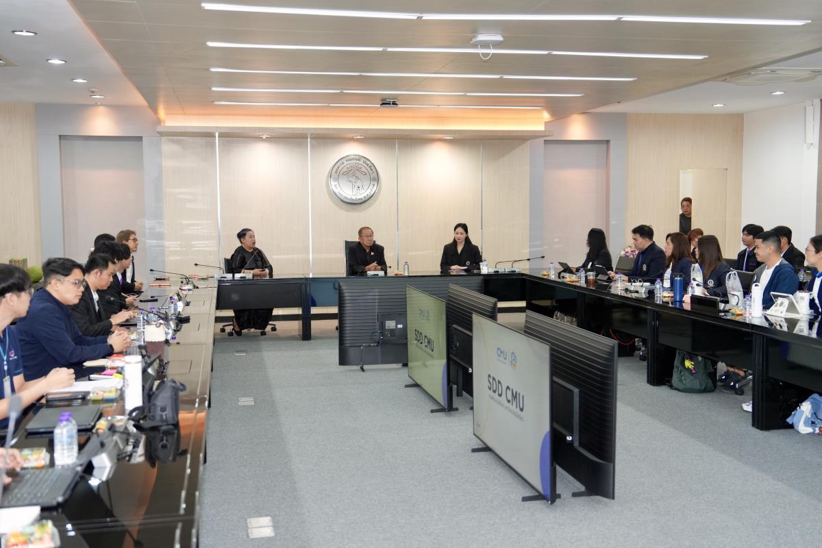 รองศาสตราจารย์ ประเสริฐ ฤกษ์เกรียงไกร รองอธิการบดีมหาวิทยาลัยเชียงใหม่ พร้อมด้วย นางสุทธิณีย์ ฉัตรยาลักษณ์ ผู้อำนวยการกองพัฒนานักศึกษา และบุคลากร กองพัฒนานักศึกษา มหาวิทยาลัยเชียงใหม่ ให้การต้อนรับ อาจารย์ ดร.พิมพนิต คอนดี ผู้ช่วยอธิการบดี ฝ่ายกิจการนักศึกษาและศิษย์เก่าสัมพันธ์ มหาวิทยาลัยมหิดล และคณะศึกษาดูงานจากกองกิจการนักศึกษา มหาวิทยาลัยมหิดล ในโอกาสเข้าศึกษาดูงานและแลกเปลี่ยนเรียนรู้ ด้านการจัดกิจกรรมนักศึกษา เพื่อสนับสนุนเป้าหมายการพัฒนาอย่างยั่งยืน กิจกรรมส่งเสริมด้านพหุวัฒนธรรม การจัดกิจกรรมสร้างเสริมสุขภาพ การบริหารจัดการศิษย์เก่า และงานองค์กรนักศึกษาและกิจกรรมชมรมของนักศึกษา ณ ห้องประชุมพระยาศรีวิสารวาจา อาคารสำนักงานมหาวิทยาลัย 1 มหาวิทยาลัยเชียงใหม่ เมื่อวันพฤหัสบดีที่ 29 มกราคม 2569