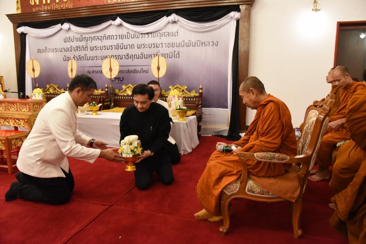 มหาวิทยาลัยเชียงใหม่ ร่วมกับคณะในสาขาวิชาวิทยาศาสตร์สุขภาพ จัดพิธีบำเพ็ญกุศลอุทิศถวายเป็นพระราชกุศล แด่สมเด็จพระนางเจ้าสิริกิติ์ พระบรมราชินีนาถ พระบรมราชชนนีพันปีหลวง น้อมรำลึกในพระมหากรุณาธิคุณอันหาที่สุดมิได้ โดยมีหลวงตาศิริ อินฺทสิริ วัดถ้ำผาแดงนิมิต ตำบลบัวเงิน อำเภอน้ำพอง จังหวัดขอนแก่น เป็นองค์แสดงพระธรรมเทศนา ศาสตราจารย์ปฏิบัติ ดร.ชรินทร์ เตชะพันธุ์ รองอธิการบดีมหาวิทยาลัยเชียงใหม่ เป็นประธานในพิธีฯ พร้อมด้วยคณะผู้บริหาร คณาจารย์ ข้าราชการ พนักงาน เจ้าหน้าที่ บุคลากร จากส่วนงานต่างๆ นักศึกษามหาวิทยาลัยเชียงใหม่ และประชาชนร่วมพิธีฯ ณ ศาลาธรรม มหาวิทยาลัยเชียงใหม่ วันเสาร์ที่ 22 พฤศจิกายน พ.ศ. 2568
