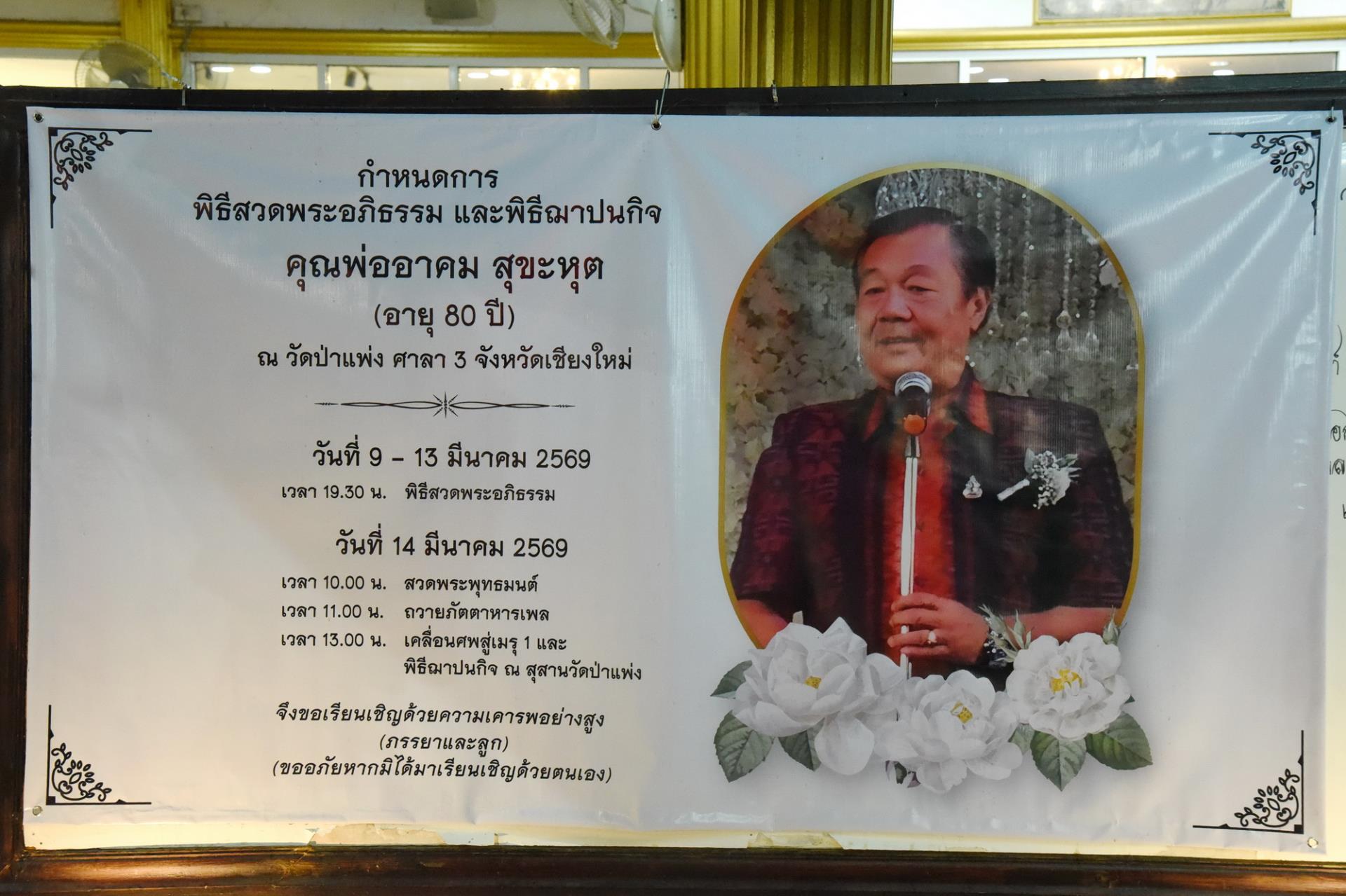 มหาวิทยาลัยเชียงใหม่ เป็นเจ้าภาพในพิธีแสดงพระธรรมเทศนาและพิธีสวดพระอภิธรรมบำเพ็ญกุศลศพ คุณพ่ออาคม สุขะหุต ซึ่งเป็นบิดาของ รองศาสตราจารย์ ดร.รัฐสิทธิ์ สุขะหุต รองอธิการบดีมหาวิทยาลัยเชียงใหม่ โดยมีศาสตราจารย์ ดร.นพ.พงษ์รักษ์ ศรีบัณฑิตมงคล อธิการบดีมหาวิทยาลัยเชียงใหม่ เป็นประธานในพิธี พร้อมด้วยคณะผู้บริหาร คณาจารย์ เจ้าหน้าที่ ร่วมพิธี ณ ศาลา 3 วัดป่าแพ่ง ตำบลช้างม่อย อำเภอเมือง จังหวัดเชียงใหม่ วันพุธที่ 11 มีนาคม พ.ศ. 2569