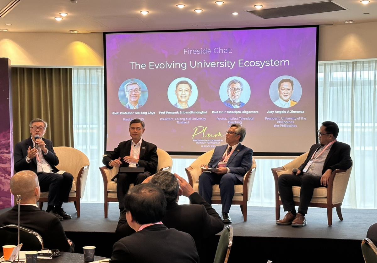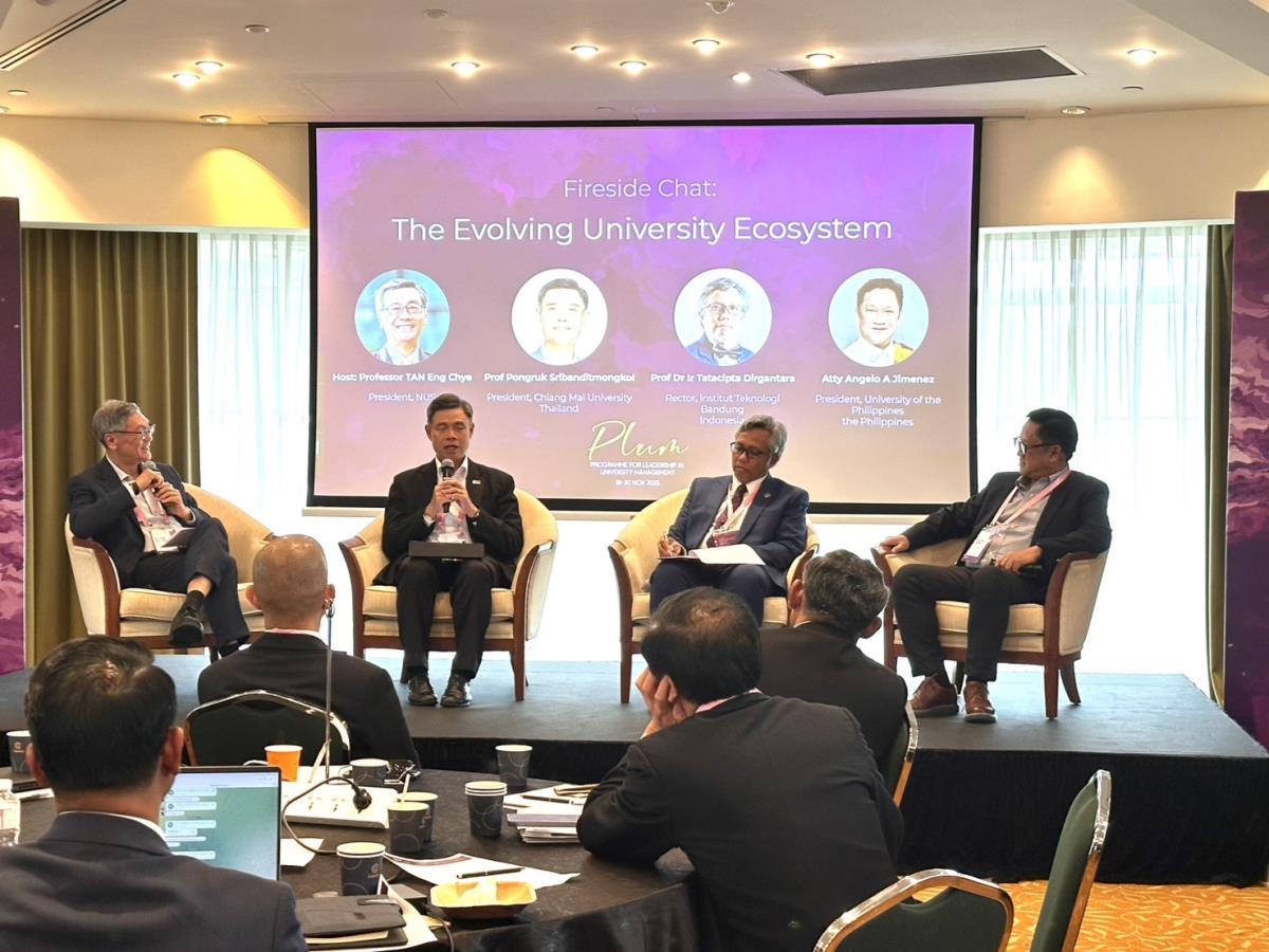National University of Singapore จัดโครงการ NUS Programme for Leadership in University Management (PLUM 2025) เพื่อเป็นเวทีสำคัญสำหรับผู้นำมหาวิทยาลัยทั้งภูมิภาคอาเซียน แลกเปลี่ยนความคิดเห็นและมุมมองด้านการศึกษาในเชิงลึก ประเด็น University Ecosystem พร้อมทั้งร่วมกันหารือเกี่ยวกับวิธีที่ดีที่สุดท่ามกลางความต้องการทางสังคมและความก้าวหน้าอย่างรวดเร็วของ (AI) การพิจารณาถึงการมีปฏิสัมพันธ์ที่ลึกซึ้งและการพึ่งพาอาศัยกันของผู้คน และอวกาศ ระหว่าง วันที่ 18-20 พฤศจิกายน 2568 ณ ประเทศสิงคโปร์ โดยมี ศาสตราจารย์ ดร.นพ.พงษ์รักษ์ ศรีบัณฑิตมงคล อธิการบดีมหาวิทยาลัยเชียงใหม่ ร่วมโครงการ PLUM 2025 และร่วมเสวนาในหัวข้อ "The Evolving University Ecosystem" พร้อมกับอธิการบดีจาก Institute Teknologi Bundung Indonesia, University of the Philippines และ Prof Tan Eng Chye อธิการบดีมหาวิทยาลัยแห่งชาติสิงคโปร์ เป็นผู้ดำเนินรายการ