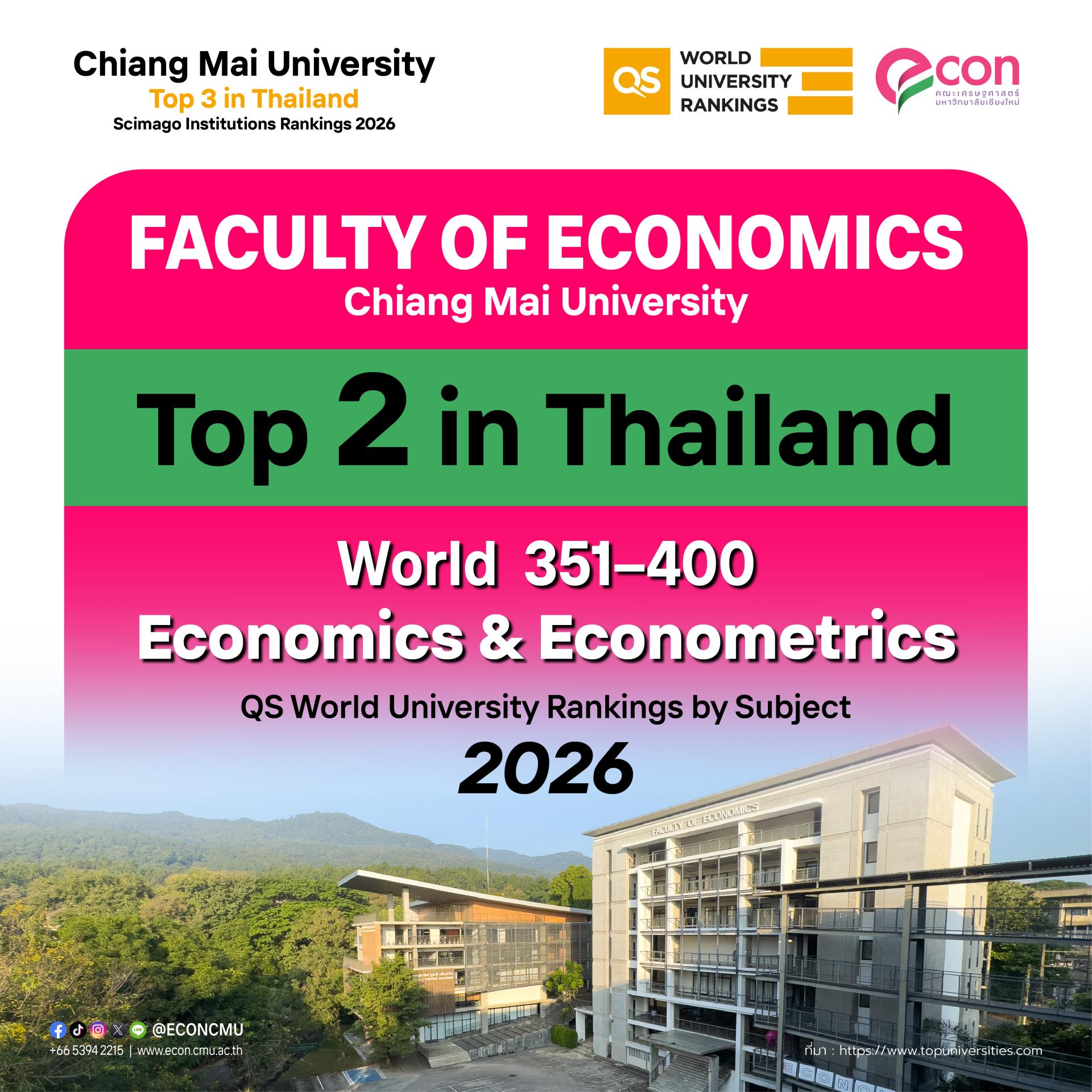 คณะเศรษฐศาสตร์ มหาวิทยาลัยเชียงใหม่ ได้ทำการเปิดสอนนักศึกษาตั้งแต่ปีการศึกษา 2507 เป็นต้นมา ซึ่งพัฒนามาจากภาควิชาเศรษฐศาสตร์ คณะสังคมศาสตร์ มหาวิทยาลัยเชียงใหม่ ต่อมาได้รับอนุมัติให้จัดตั้งเป็น คณะเศรษฐศาสตร์ เมื่อวันที่ 28 สิงหาคม 2535 โดยมีจุดมุ่งหมายเพื่อขยายการศึกษาขั้นปริญญาทางการศึกษาออกสู่ภูมิภาคให้สอดคล้องกับ นโยบายของรัฐบาลในการจัดตั้งมหาวิทยาลัยเชียงใหม่ ตามแผนพัฒนาภาคเหนือ ตลอดจนเป็นแหล่งการวิจัยและการบริการวิชาการแก่สังคม